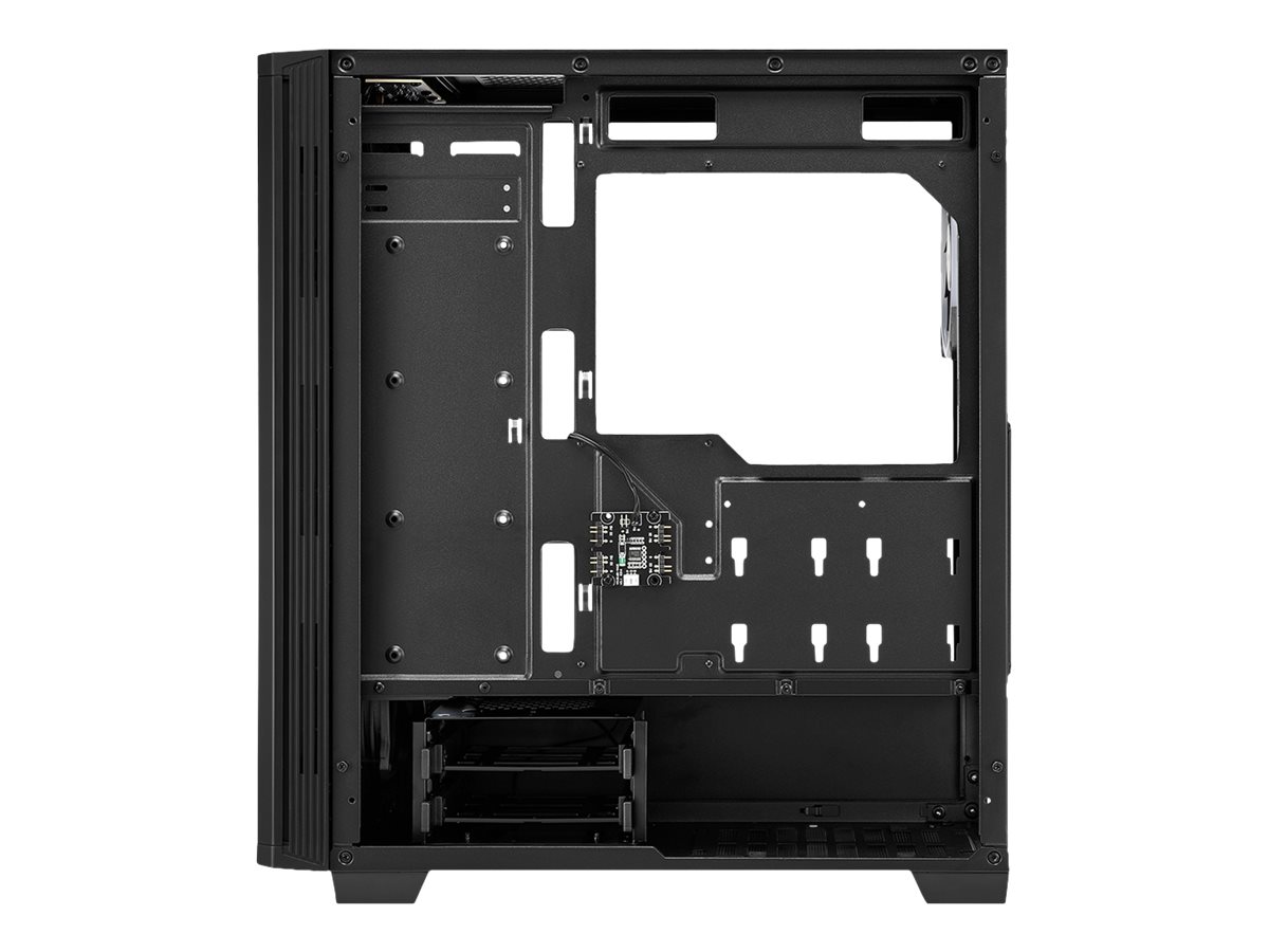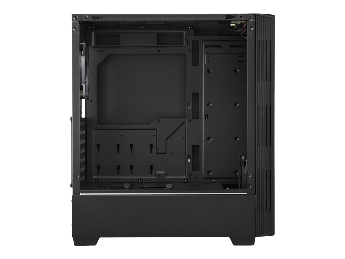 | Egenskaper hos systemkabinett | Kabelhanteringssystem, interiörmålning, verktygslösa enhetsfack, RGB-fläktkontroll, ASUS Aura Sync RGB illumination, ASRock Polychrome SYNC, Gigabyte RGB Fusion Ready, MSI RGB Mystic Light Sync |