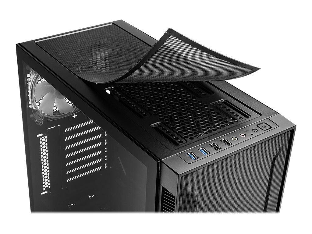 | Egenskaber, systemkabinet | Meshed front panel, kabeladministrations-system, indvendig maling, støvfilter i bunden, understøtter 360 mm radiator i frontpanel, værktøjsfri drevbåse, topmagnetisk støvfilter, ASUS Aura Sync RGB illumination, ASRock Polychrome SYNC, Gigabyte RGB Fusion Ready, MSI RGB Mystic Light Sync, ARGB controller |