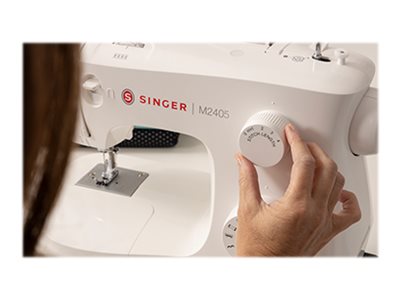 Singer M2405 har en tydelig stinglængdevelger, der gør det muligt at foretage præcise justeringer til forskellige stoftyper, hvilket gør syningen nemmere for både begyndere og erfarne brugere.