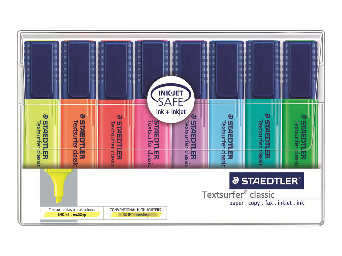 | Produktbeskrivelse | STAEDTLER Textsurfer classic - highlighter - neongrøn, neongul, neonorange, neon pink, neonblå, neonrød, neonturkis, neonviolet (pakke med 8) |