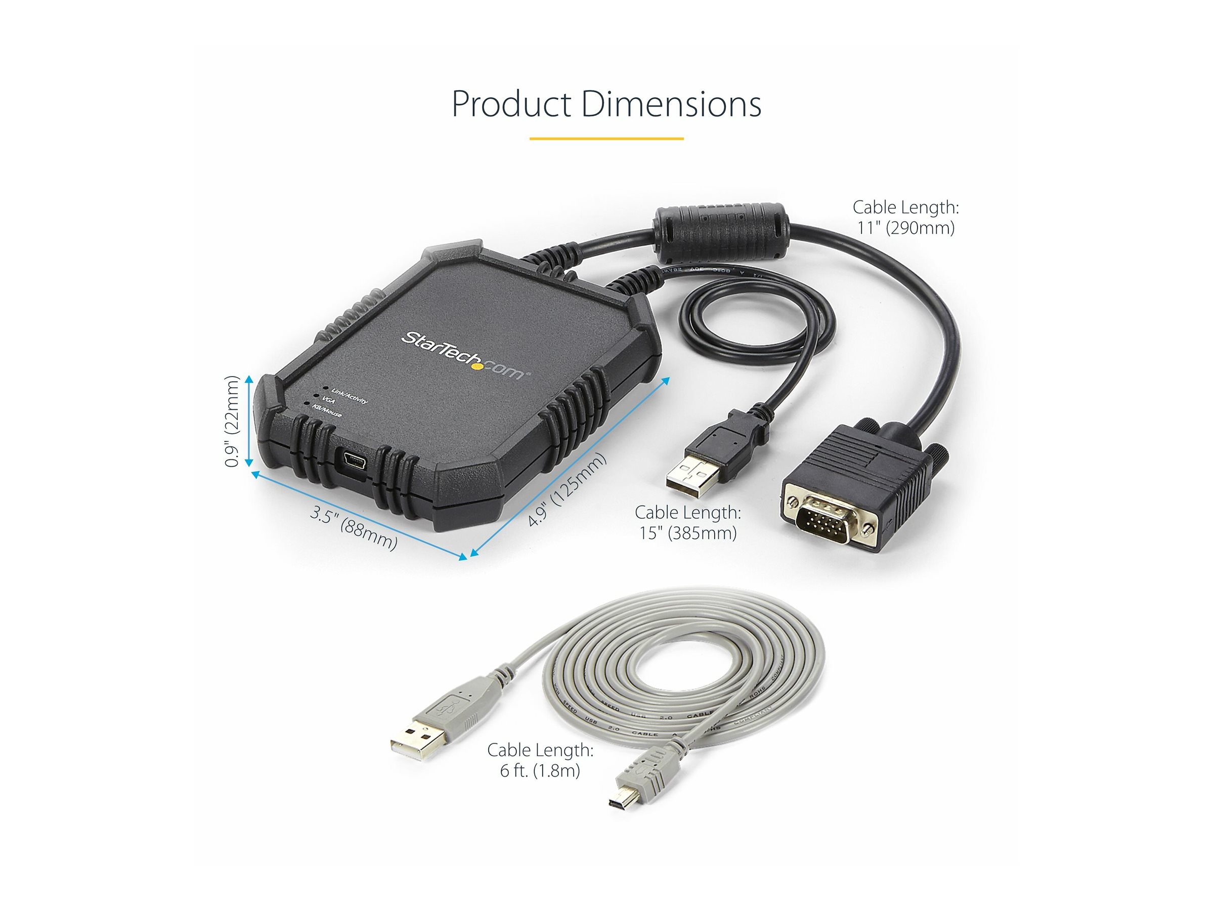 | Medföljande kablar | 1 x USB-värdkabel - 38.5 cm | 1 x USB-kabel - 1.8 m | 1 x VGA-kabel - 7.6 cm |