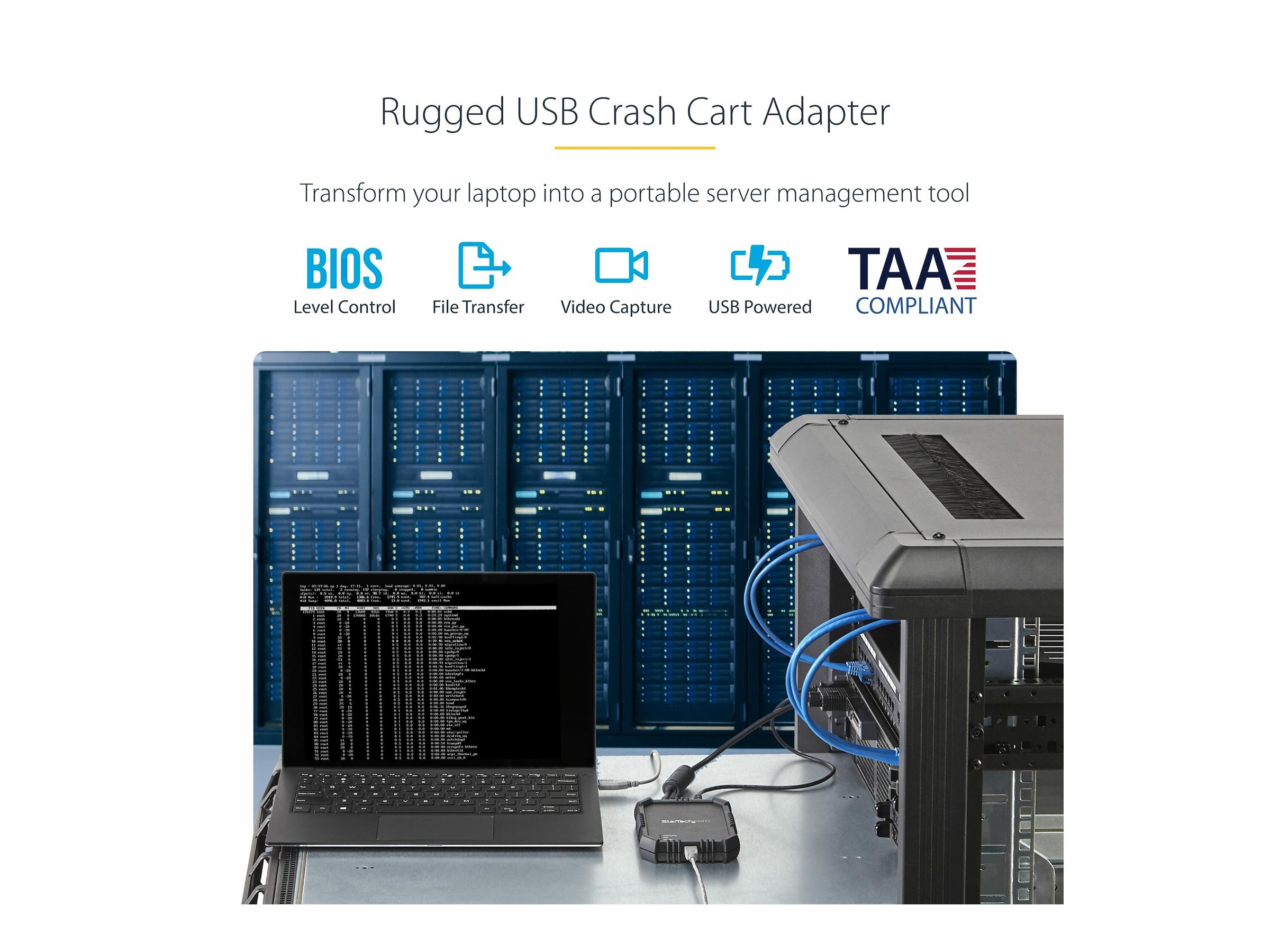| Produktbeskrivelse | Startech USB Crash Cart Adapter with File Transfer and Video Capture - Laptop to Server KVM Console - Portable & Rugged (NOTECONS02X) - KVM switch - 1 porte |