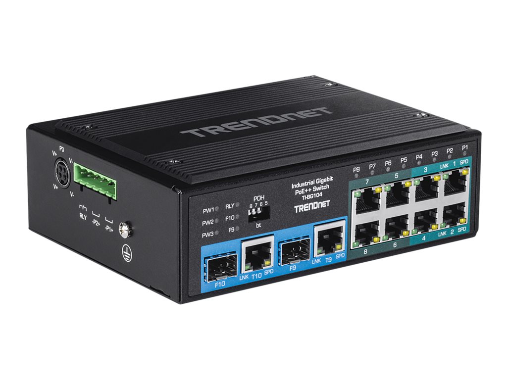 | Produktbeskrivelse | TRENDnet TI-BG104 - switch - industriel - 10 porte - ikke administreret - TAA-kompatibel |