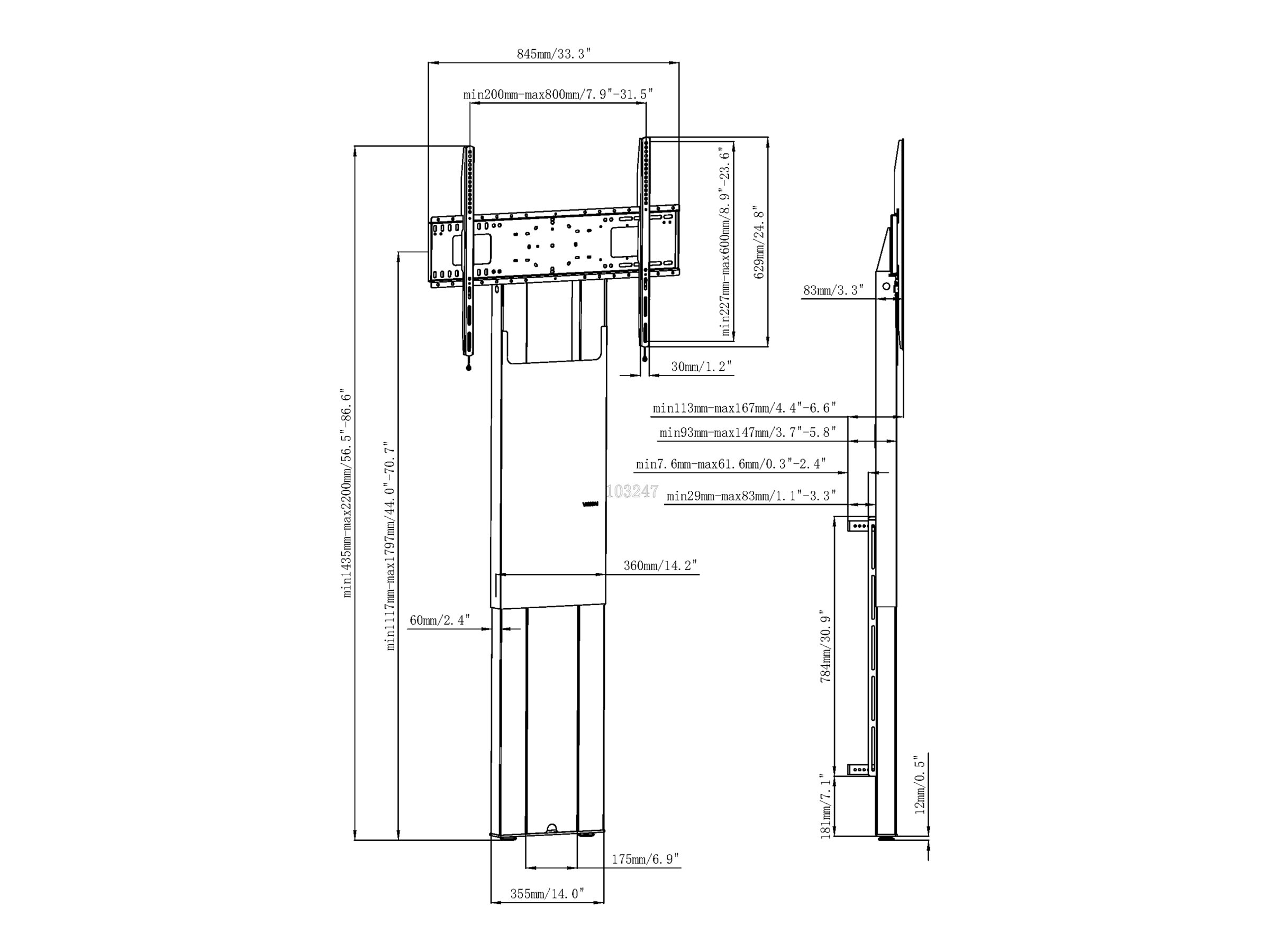 | VESA-monteringsinterface | 800 x 500 mm, 400 x 300 mm, 400 x 200 mm, 400 x 400 mm, 800 x 400 mm, 600 x 400 mm, 600 x 600 mm, 800 x 600 mm, 300 x 300 mm, 500 x 400 mm, 600 x 500 mm, 500 x 500 mm, 400 x 600 mm, 300 x 400 mm |
