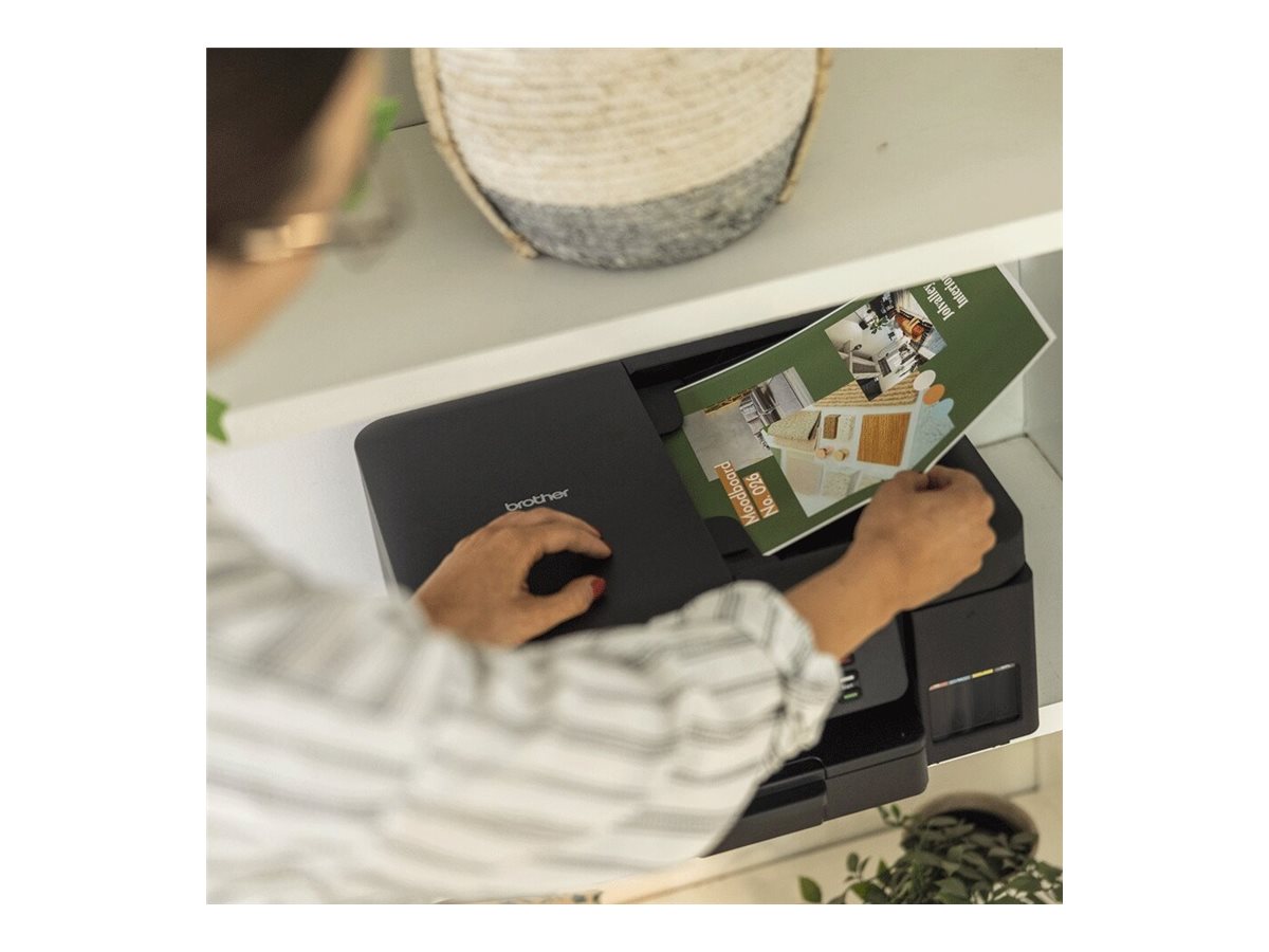 Fyld op og print mere for mindre med blækflasker med høj kapacitet og blæktanke, der er nemme at fylde op, og som sænker dine omkostninger til farveprint. Uanset om du er på hjemmekontoret, i stuen eller arbejder fra køkkenet, kan du nyde ubesværet tilslutning og problemfri udskrivning med alt-i-én Ink Tank-printeren DCP-T780DW. Print direkte fra eller scan til pc og mobilapp. Oplev problemfri papirhåndtering med en manuel indføringsbakke og en automatisk dokumentføder (ADF) til 20 ark.