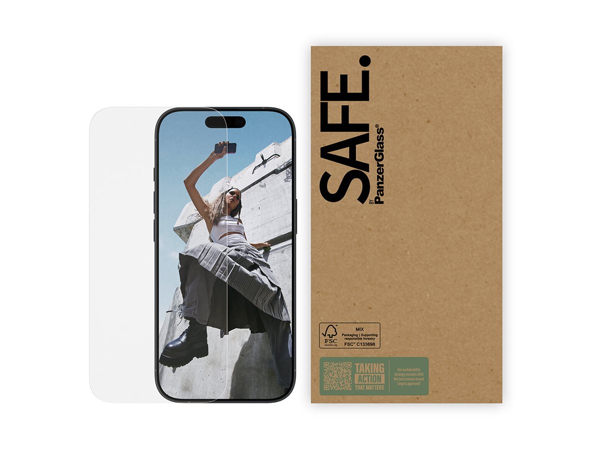 Skærmbeskytteren fra SAFE. by PanzerGlass er for real. Designet til dig, dine venner og din kæreste. Skabt til at modstå scratches og drops, når I slentrer gennem byen og danser hele natten. Og lavet af 60 % genanvendt materiale, så vi sammen kan tage endnu et skridt mod en bedre fremtid. Glasset fungerer som en diskret airbag, der beskytter din skærm, uden at det går ud over telefonens funktionalitet og lækre design. Det har endda en belægning, der reducerer fedtfingre og snavsNår du vælger SAFE., gør du det ikke kun for din egen skyld, men også for alle dem, der kan få glæde af din telefon efter dig! Ved at passe godt på din elskede mobil kan du nemlig give den et andet, tredje og nogle gange fjerde liv hos en anden, som vil elske den lige så højt som dig. Det er ren telefonkærlighed – og én måde at bidrage til mere bæredygtig fremtid på! En anden er at bruge mindre emballage: Den her skærmbeskyttelse bruger 33 %* mindre papiremballage end tidligere modeller og leveres i en genanvendelig FSC -mærket æske.SAFE. er noget, man føler sig. Det skal være nemt, ligetil og for alle. Uden lange manualer og langhårede instruktioner. Og får du brug for en ekstra hånd, tjekker du bare trin-for-trin-guiden eller QR-koden til videoen. Og husk: Så snart skærmbeskytteren sidder på din mobil, er det slut med at frygte slo-mo-synet af din skærm, der nosediver mod asfalten. Det kommer muligvis aldrig til at ske, men hvis det gør, vil du fortryde, at du ikke klikkede "Tilføj til kurv".Selv den bedste skærmbeskyttelse er nul værd, hvis den går ud over skærmoplevelsen! I hvert fald hvis du spørger os. Derfor har den her skærmbeskytter størrelsen "Ultra-Wide Fit"! Det betyder, at den beskytter fronten af din telefon, samtidig med at den giver dig en fuldendt skærmoplevelse og efterlader lidt plads langs kanterne til et cover. Vil du være ekstra SAFE., kan du altså nemt kombinere skærmbeskyttelsen med et cover og en kameralinsebeskytter fra SAFE. by PanzerGlass ️.Keep your phone SAFE.*Beregnet af tredjepartslaboratorium ved at sammenligne vægten af den nye papiremballage introduceret i 2023 med vægten af den tidligere papiremballage introduceret i 2022 (CPRTC, rapportnummer ZSA20231301-0016).