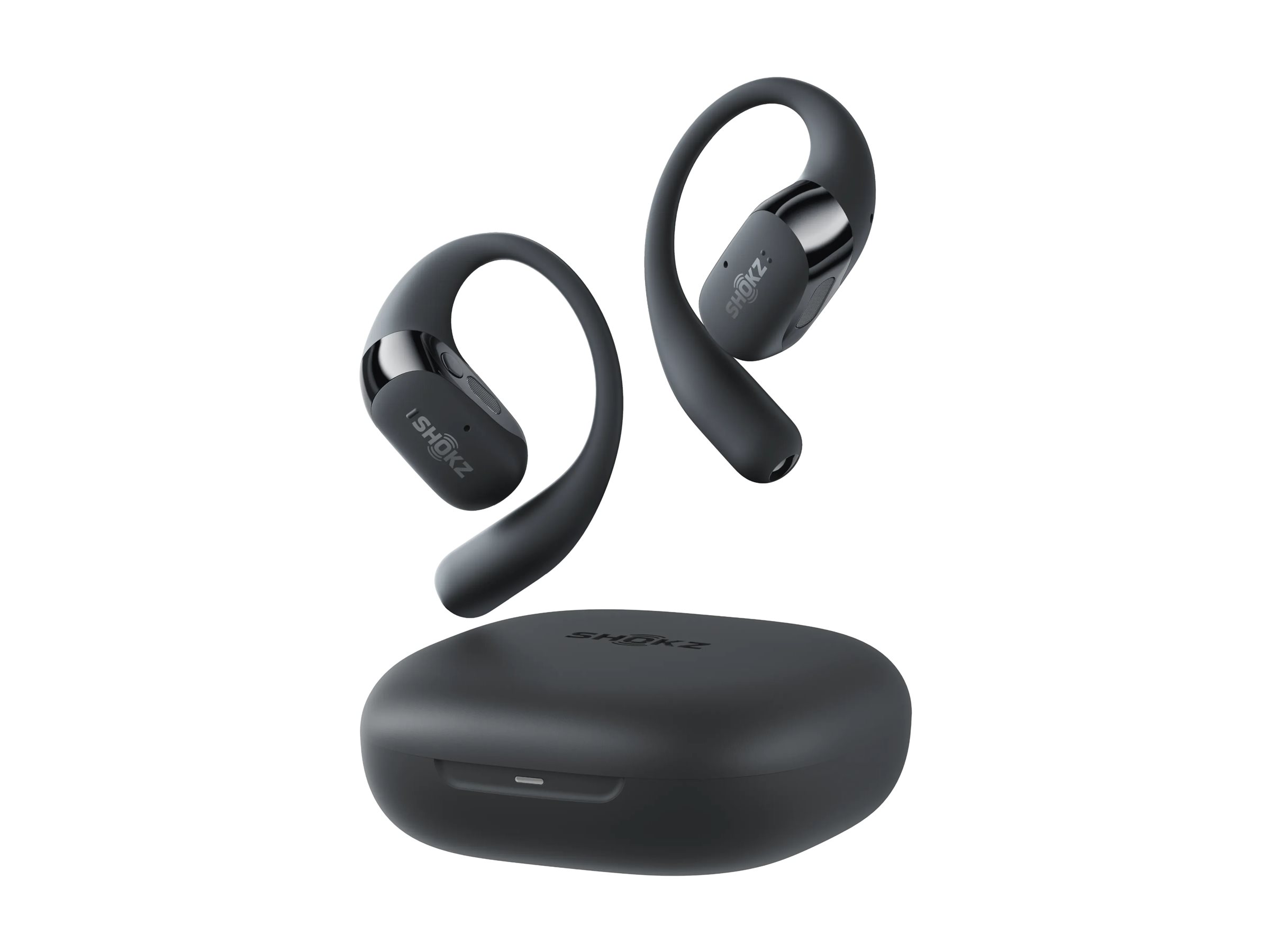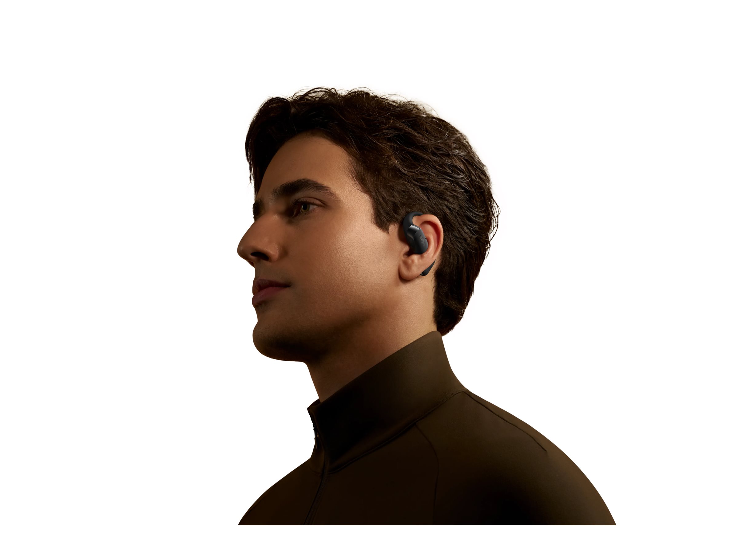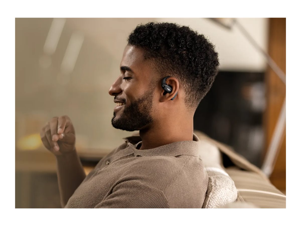 SHOKZ OpenFit 2 har et åbent øredesign, der øger komforten og samtidig giver mulighed for at høre omgivende lyde, hvilket gør den velegnet til udendørs brug.