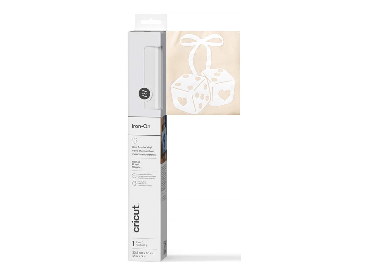 | Produktbeskrivelse | Cricut Iron-on Flocked - varmeoverførselsmateriale - 30.5 x 48.3 cm - hvid - vinyl |