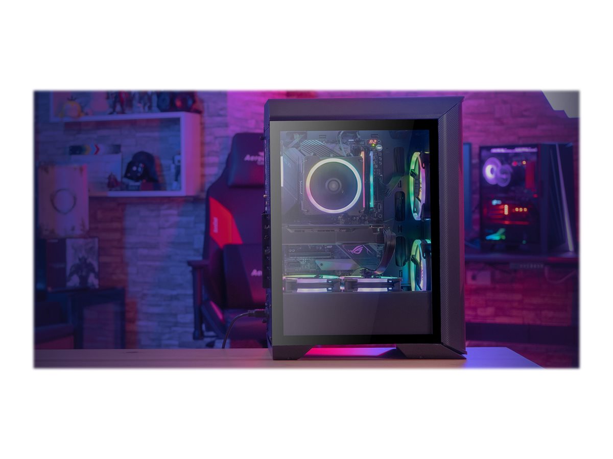 | Egenskaber, systemkabinet | Meshed front panel, kabeladministrations-system, understøtter 120 mm radiator i bagpanel, understøtter 120/240/360 mm radiator i frontpanel, aftagelige støvfiltre, understøtter 120/240 mm radiator i toppanel |