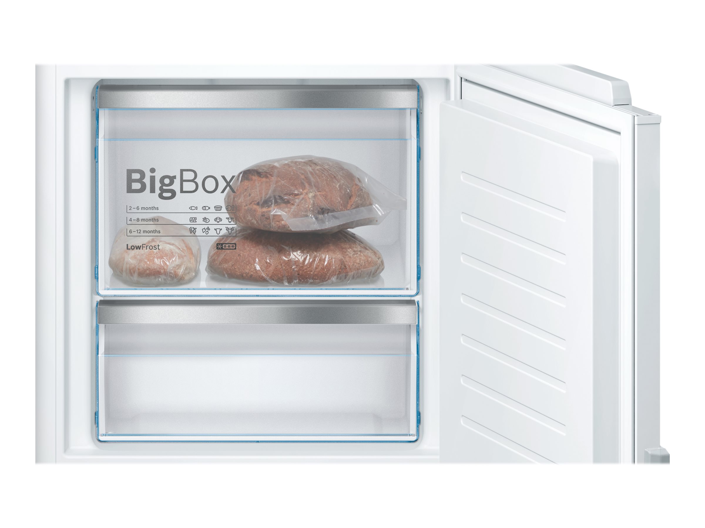 | Fryser hylder / skuffe detaljer | 1 x skuffe - BigBox | 2 x skuffe - gennemsigtig |