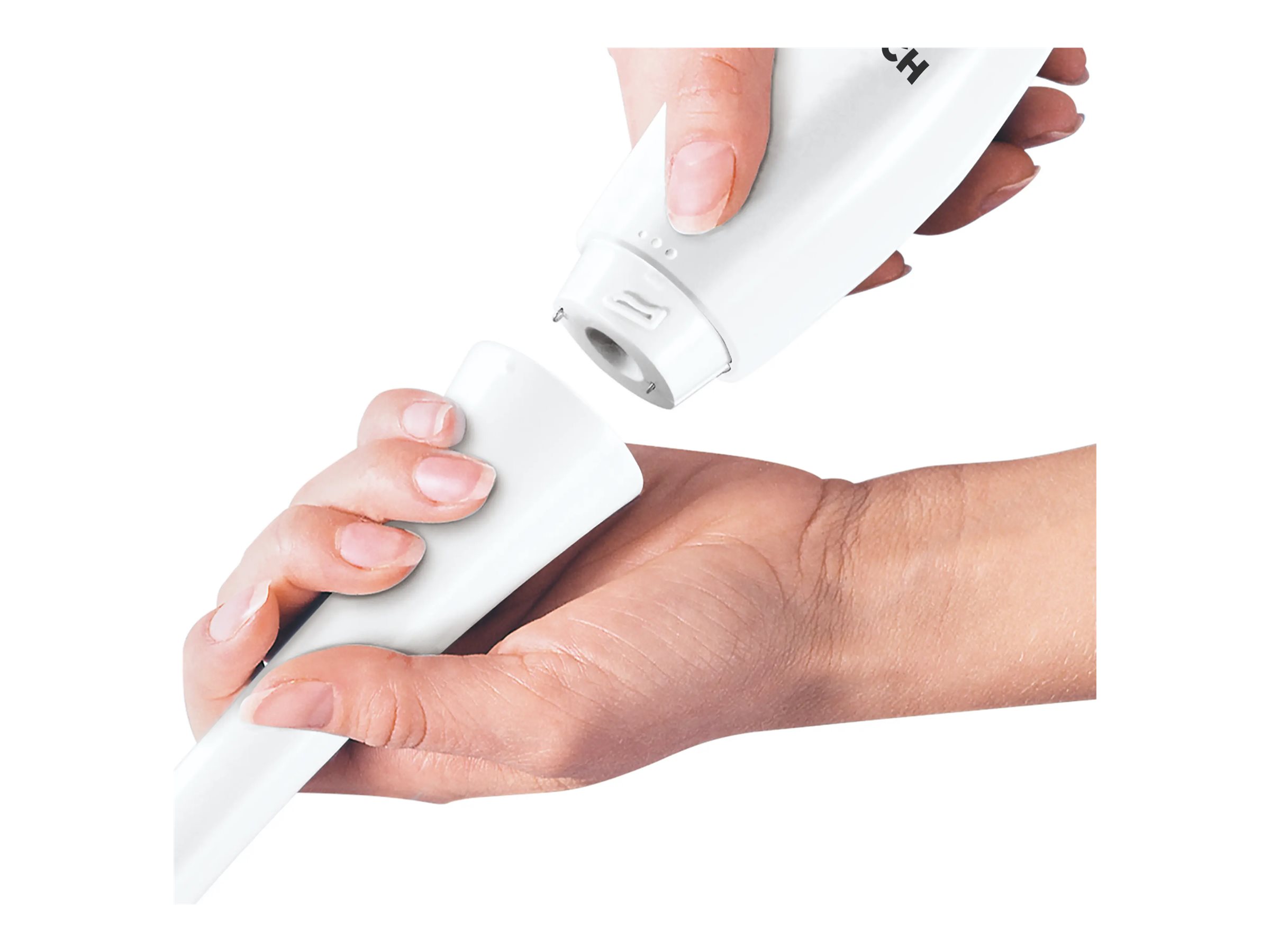 | Inkluderede klinger og påsættelser | Håndblenderfod af plastik, 4-vinget klinge |