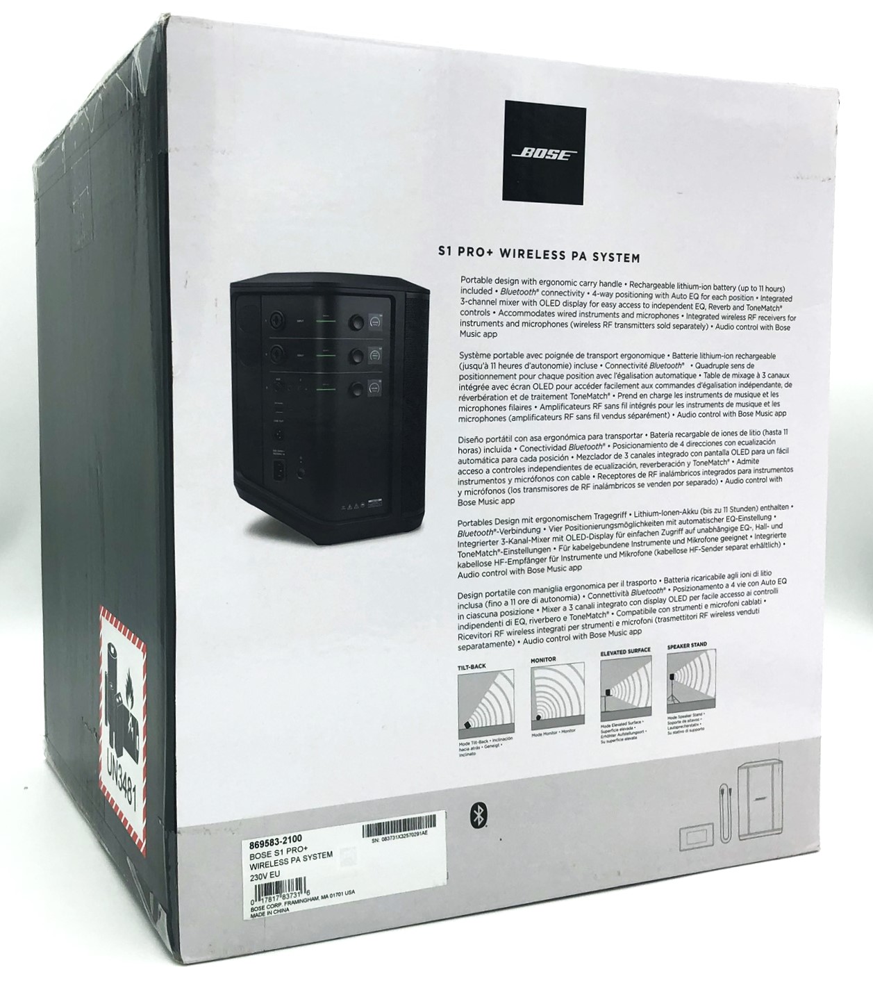 Bose S1 Pro+ er designet med tanke på bærbarhed og har et indbygget bærehåndtag samt aluminiums- og polypropylenmaterialer, der gør den nem at transportere til optrædener og arrangementer.