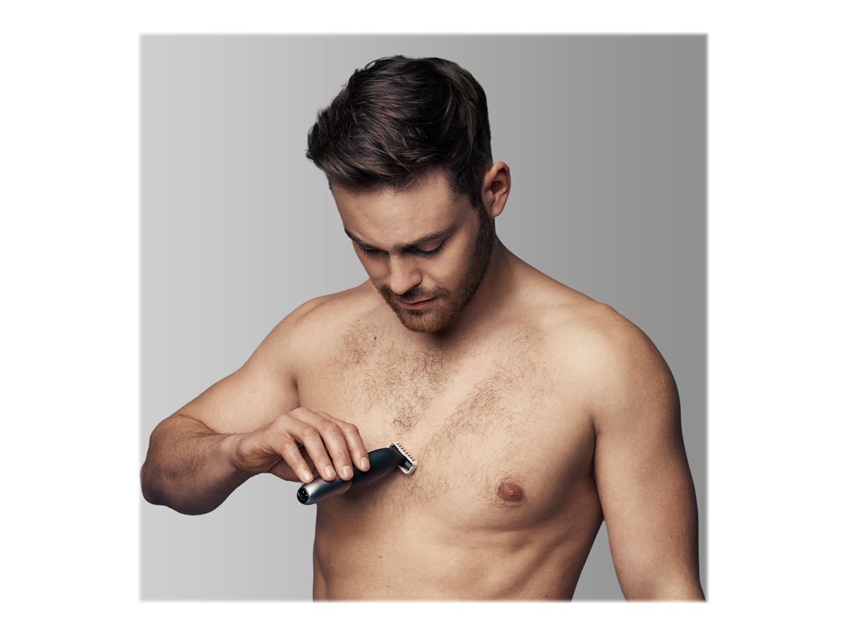 | Inkluderet tilbehør | Rejsetaske | SkinGuard-kampåsætning | 3 mm kropsbehåringskam | Kampåsætning (1 mm) | Kampåsætning (2 mm) | Kampåsætning (3 mm) | Kampåsætning (5 mm) | SmartPlug oplader | Beskyttende hætte |