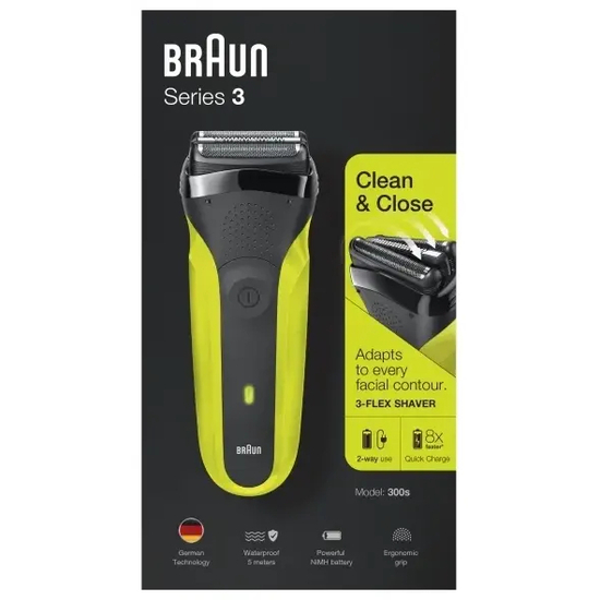 Braun Series 3 300s - Shaver - trådløs - sort/grøn