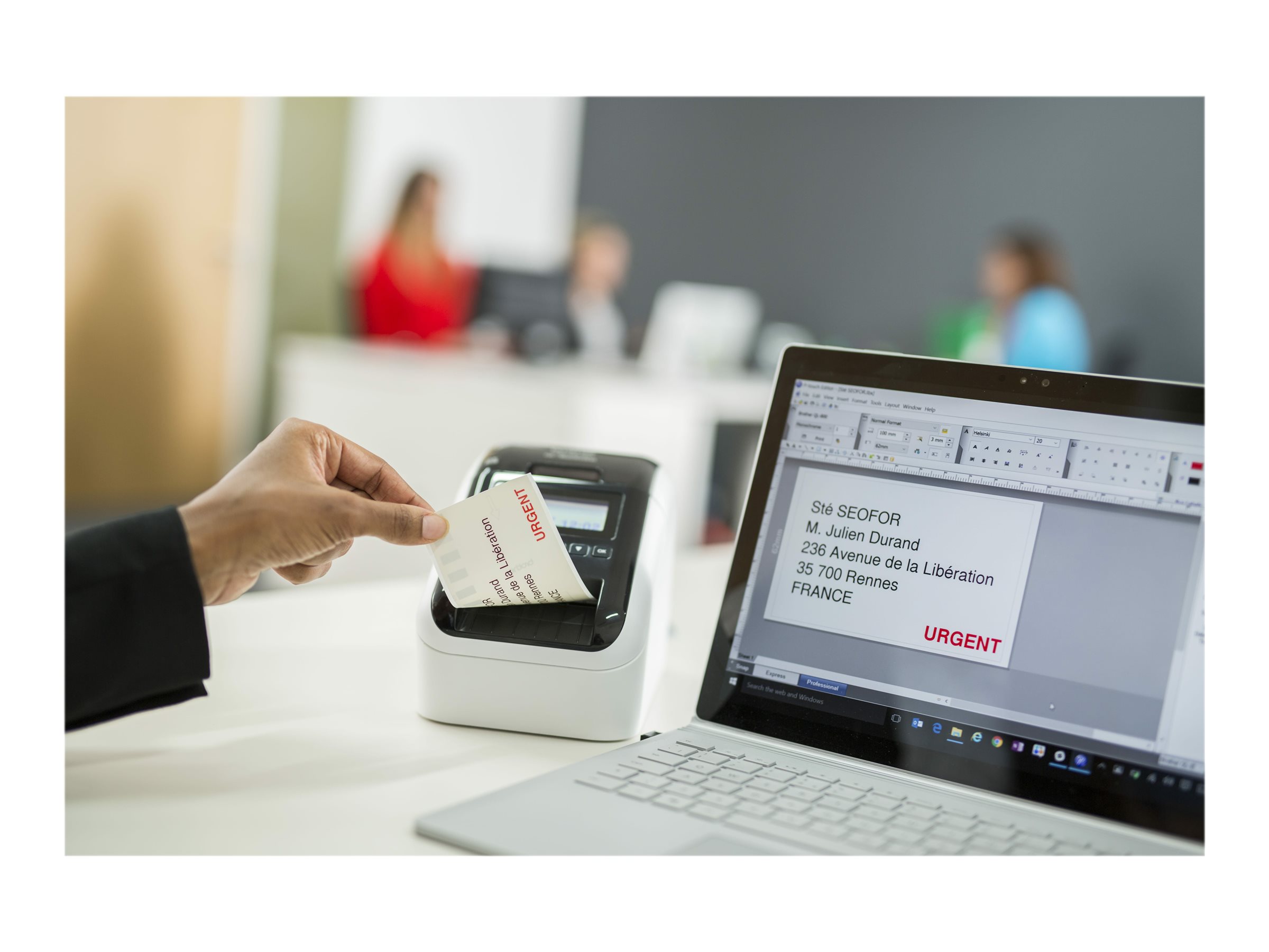 Print labels fra din PC, Mac, smartphone eller tablet via USB, Ethernet, Wi-Fi og Bluetooth. Du kan også vælge at printe uden brug af førnævnte ved at printe direkte fra labelprinterens hukommelse via det integrerede baggrundsbelyste LCD-display. Du kan bruge specielle ruller, så du kan printe labels med sort og rød skrift uden brug af blæk eller toner. Og med specielt designede labels op til en meter, med indbygget kniv eller endeløs bane, kan man virkelig se, hvorfor dette er en meget avanceret labelprinter.