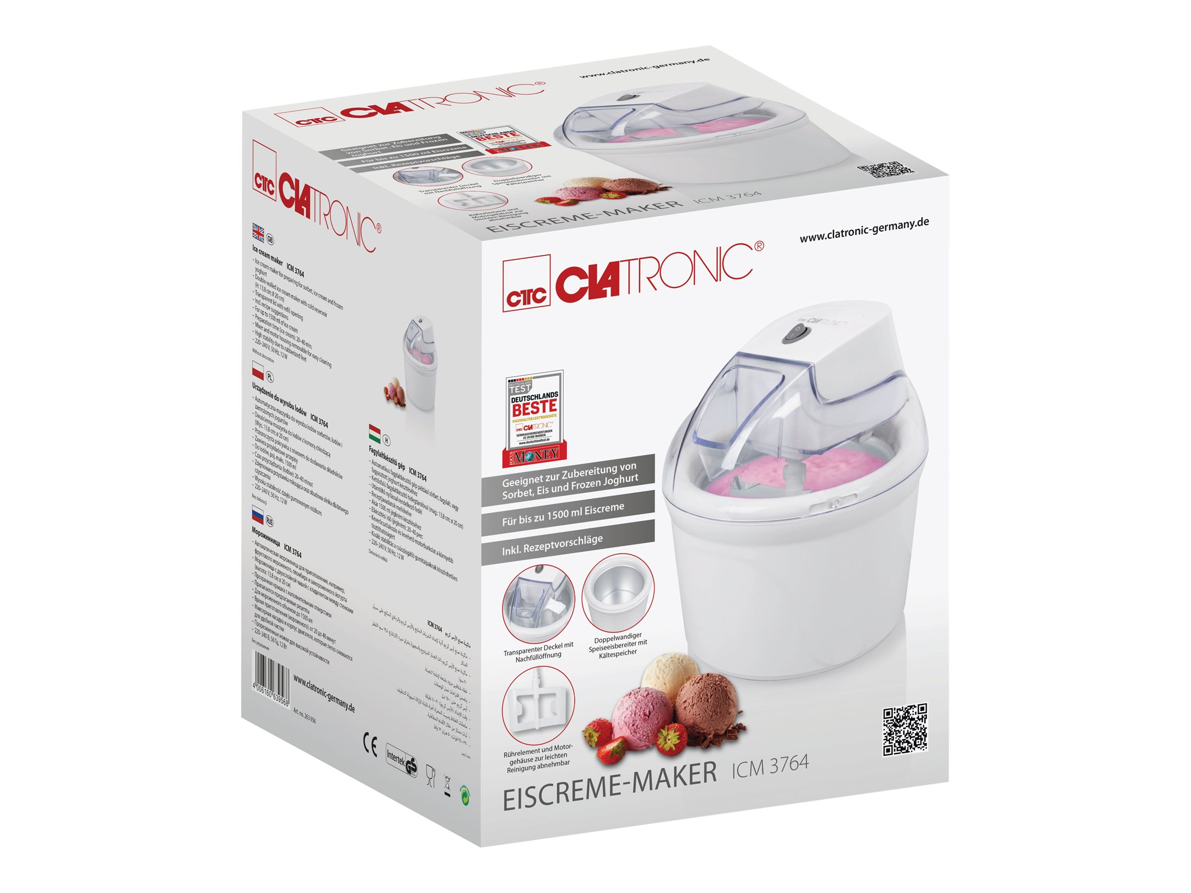 | Produktbeskrivelse | Clatronic ICM 3764 - sorbetblender - hvid |