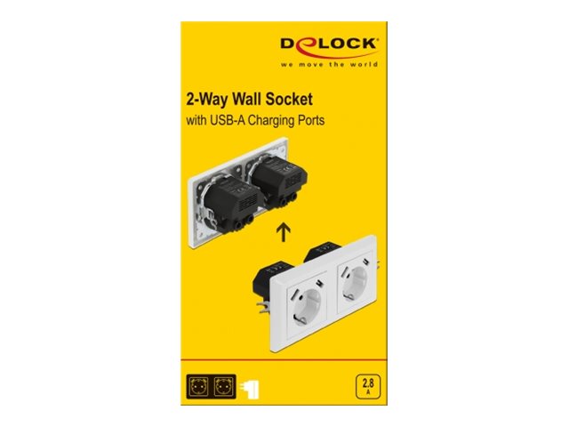 | Produktbeskrivelse | Delock - strømsokkel-outlet - 2 gange - 2 strømsokler, 4 USB-sokler - hvid |