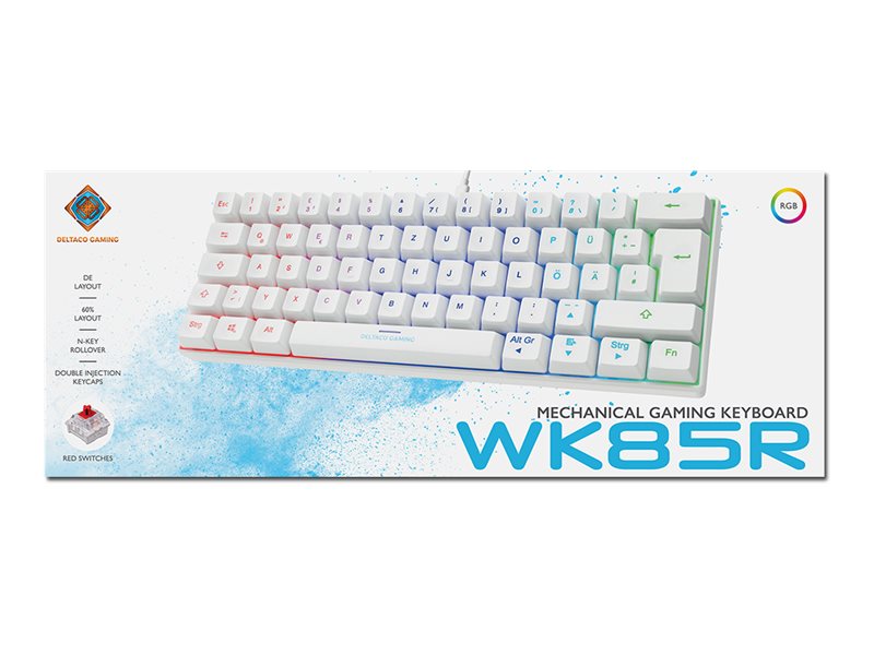 | Produktbeskrivelse | DELTACO GAMING GAM-075 - tastatur - QWERTZ - tysk - hvid Indgangsudstyr |