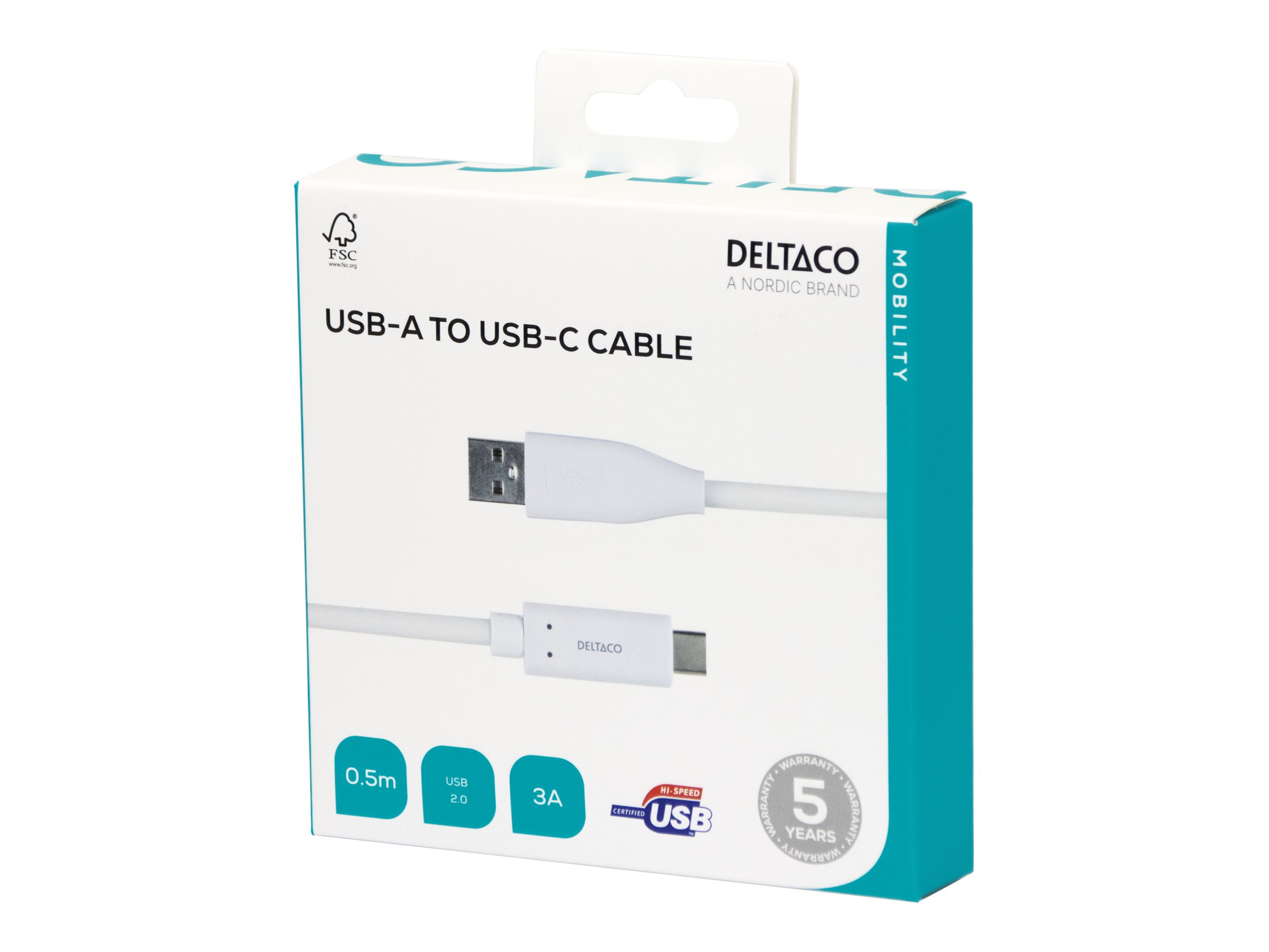 | Produktbeskrivelse | DELTACO USBC-1008M - USB Type-C kabel - USB-C til USB - 50 cm |