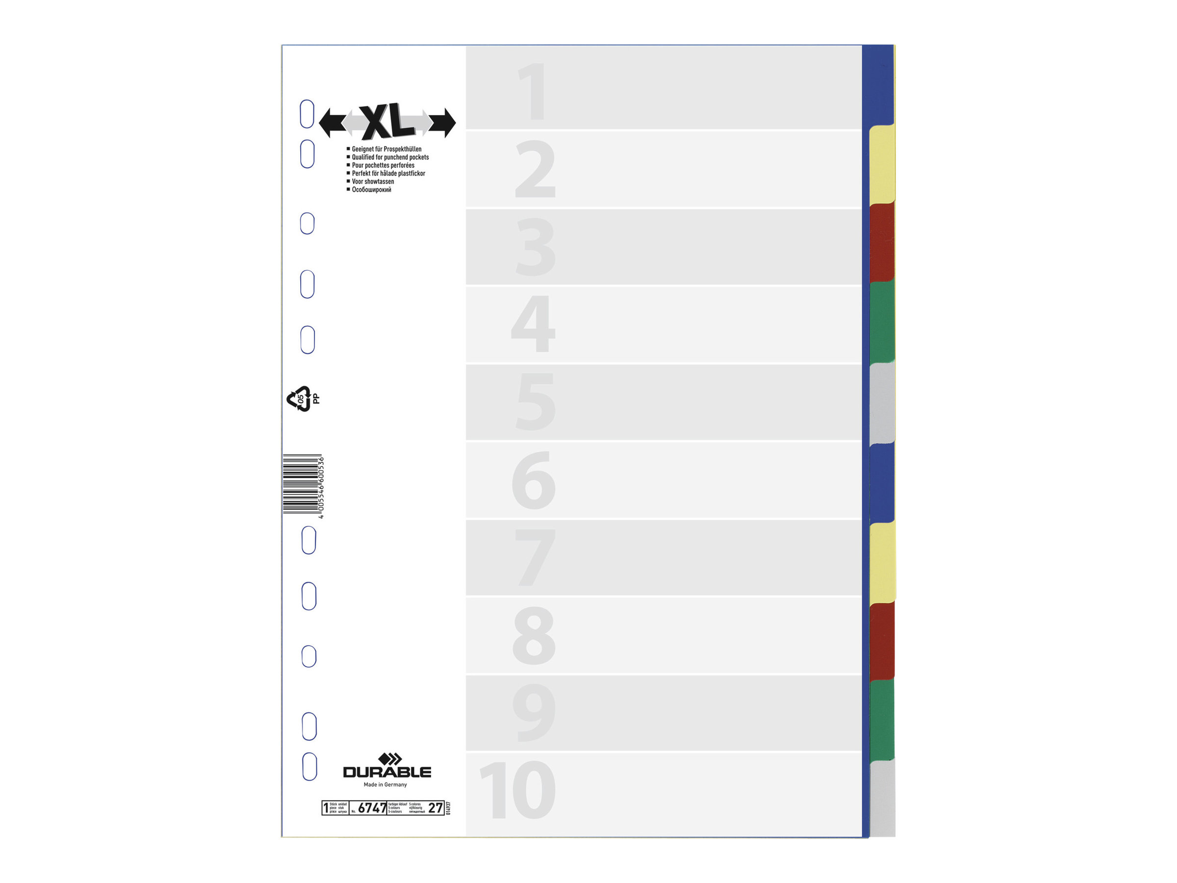 | Produktbeskrivelse | DURABLE - deler - 10 dele - for A4 - med faneblade - grå, blå, gul, rød, grøn |