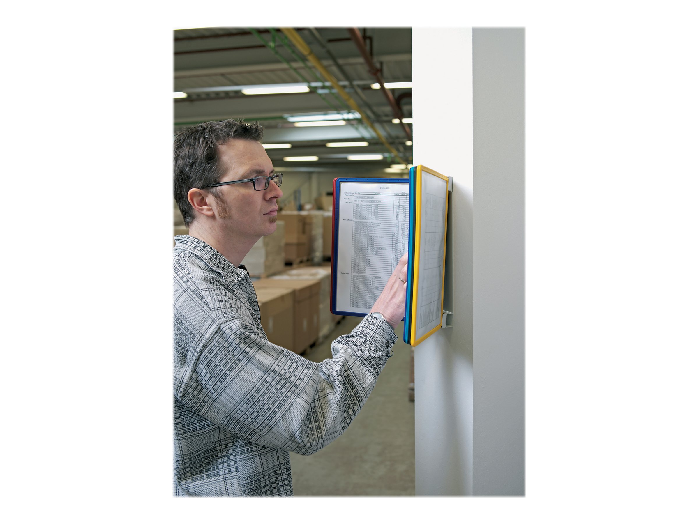 Komplet vægstativ til industrielle miljøer, lagerbygninger, værksteder m.v. Robust metal konstruktion. Stabilt og modstandsdygtig overfor ridser. Leveres med 10 registerlomme fremstillet i polypropylen til 20 A4-sider, i 5 farver.