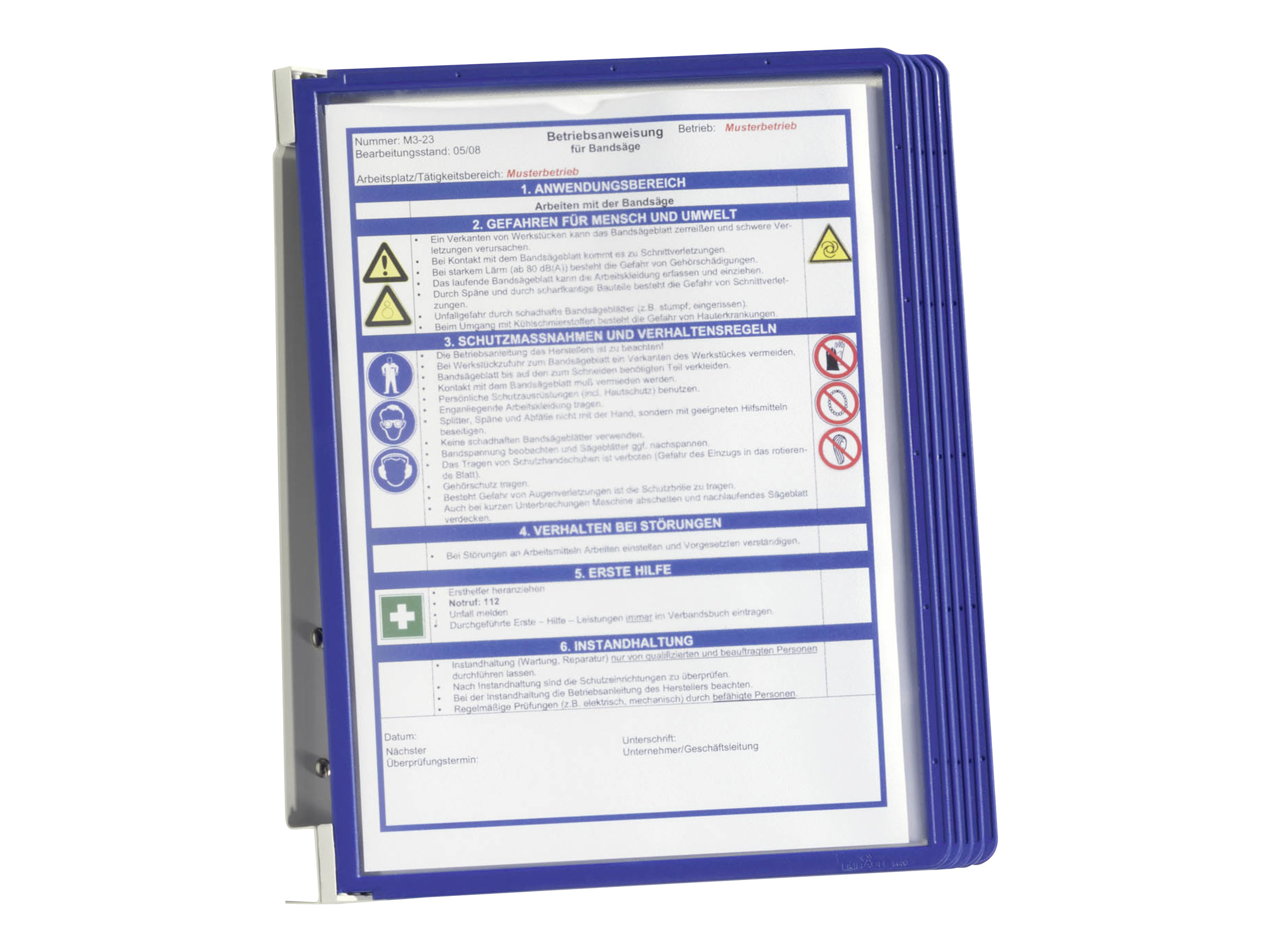 Komplet vægstativ til industrielle miljøer, lagerbygninger, værksteder m.v. Robust metal konstruktion. Stabilt og modstandsdygtig overfor ridser. Leveres med 5 registerlomme fremstillet i polypropylen til 10 A4-sider i rød med 5 stk rubrikholdere (58 mm).