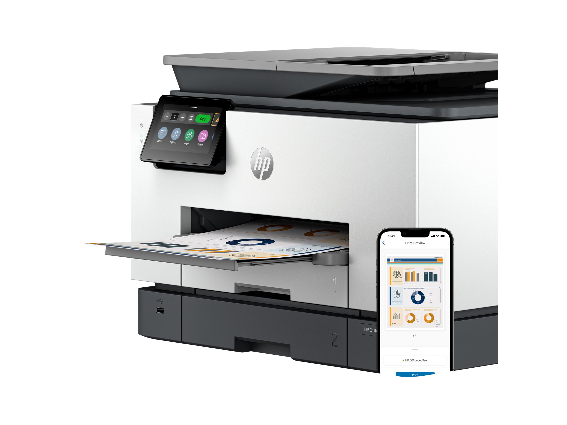 Med to 250-siders inputbakker er HP OfficeJet Pro-printeren altid klar til at håndtere selv de største printmængder.