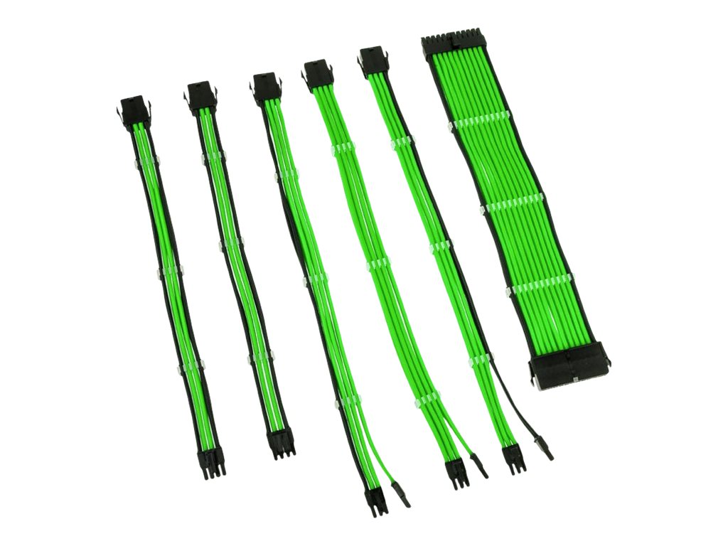 | Kabelstykker i kit | 1 x strømforlængerkabel - strøm 24 pin ATX til strøm 24 pin ATX - 30 cm | 1 x strømforlængerkabel - strøm 8 pin EPS12V (hun) til power 8 pin EPS12V (han) - 30 cm | 1 x strømforlængerkabel - strøm 8 pin EPS12V (hun) til strøm 8 pin EPS12V med aftagelig 4 pin sektion - 30 cm | 3 x strømforlængerkabel - 8 pin PCI Express-strøm (hun) til 6+2 pin PCI Express-strøm (han) - 35 cm |