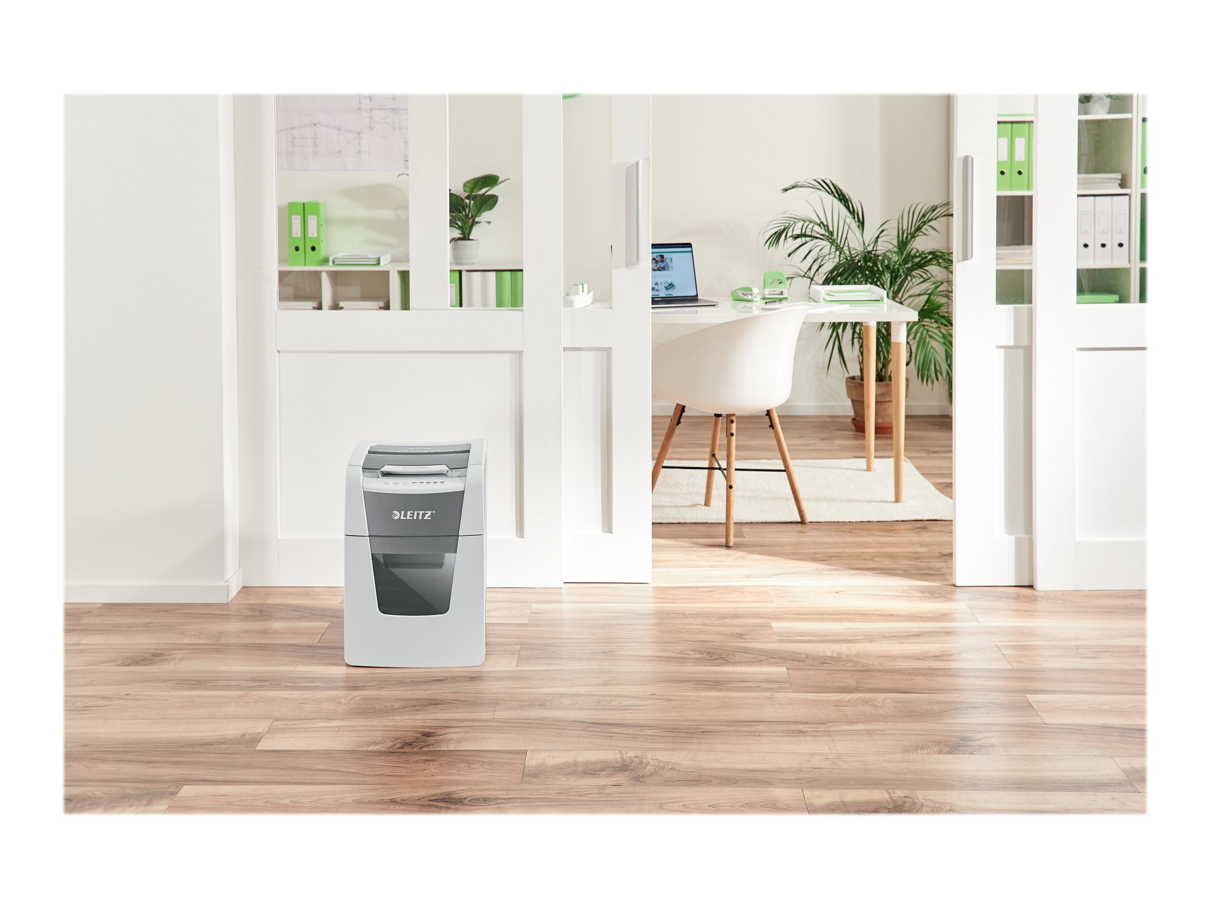 Fuldautomatisk makulator fra Leitz med unik tømningsfunktion uden rod. Så intelligent, at den roligt fungerer på egen hånd, bare indsæt din stak med papirer (inkl. hæfteklammer og papirclips), luk låget og fortsæt med andet arbejde. Ideel til brug på mindre kontorer. Højere sikkerhed og fremragende ydelse med denne anti-blokerings, stille autofeed-makulator med lang løbetid (20 min.) Makulerer automatisk 100 A4 ark (80 g) i sikkerhedsniveau P5 (2x15mm) mikromakuleringsstykker i én omgang ned i den generøse 34L beholder. Enkel betjening ved hjælp af touch-kontrolknapper.