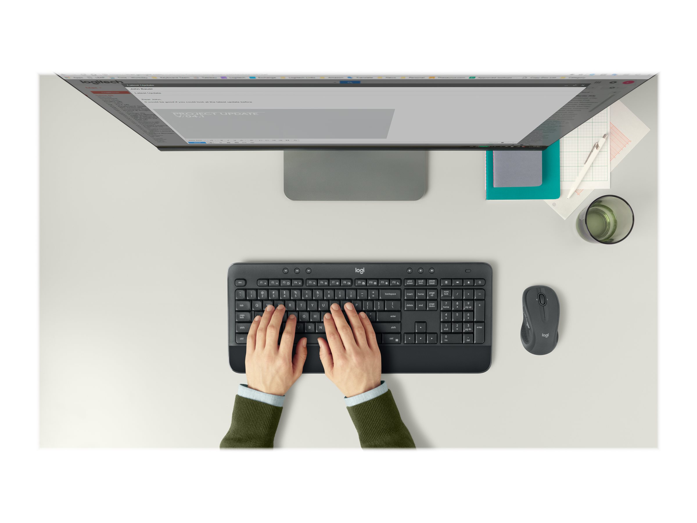 Forbind dit tastatur og din mus med en lille Logitech Unifying USB-modtager. Du får en pålidelig - og krypteret - trådløs forbindelse på op til 10 meters afstand, stort set uden forsinkelser eller udfald.