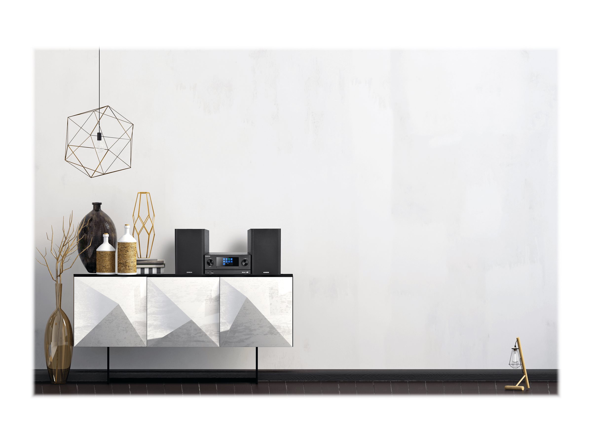 Kenwood M-9000S har et 2-vejs højttalersystem med en crossover-kanal og leverer klar og kraftfuld lyd. Med indbyggede equalizer-forudindstillinger som Balanced, Bright, Clear, Powerful og Warm kan du tilpasse lydoplevelsen efter dine præferencer.