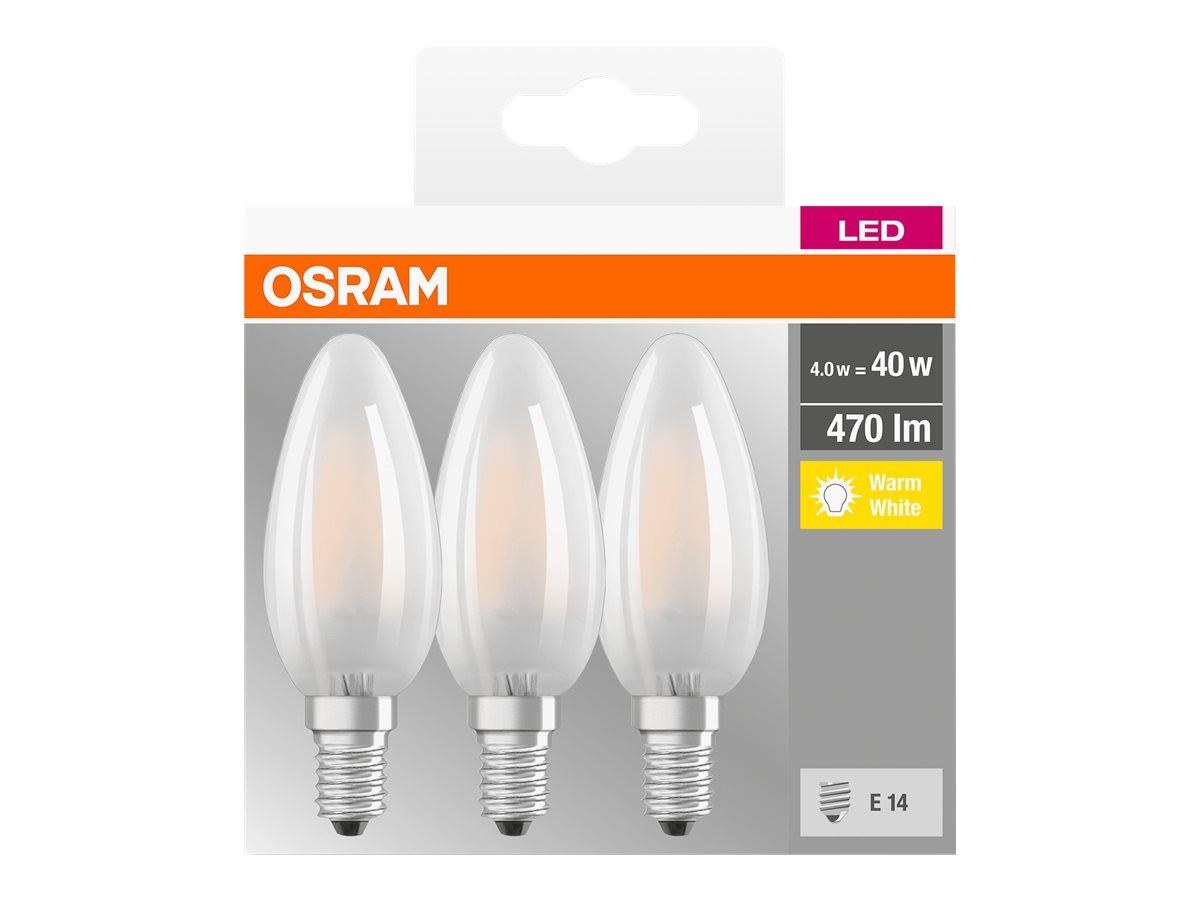 | Produktbeskrivelse | OSRAM LED BASE CLASSIC B - LED-lyspære - form: B35 - E14 - 4 W - varmt hvidt lys - 2700 K |
