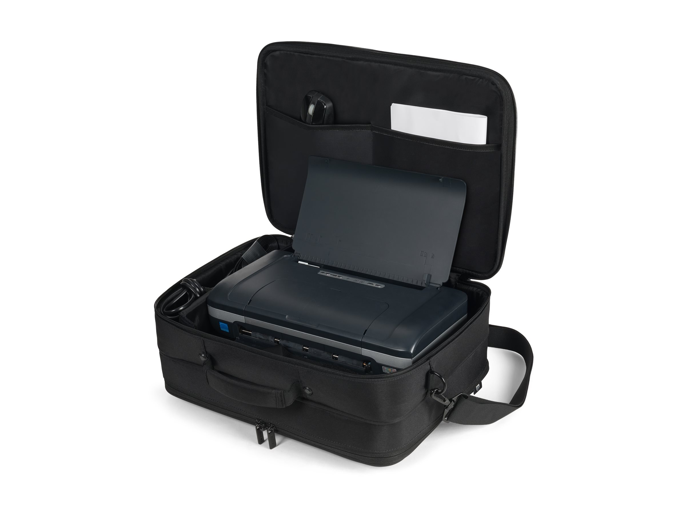 | Ekstra rum | GPS, frontlomme med lynlås til tilbehør, RFID-beskyttet lomme, dokumentlomme bagtil |