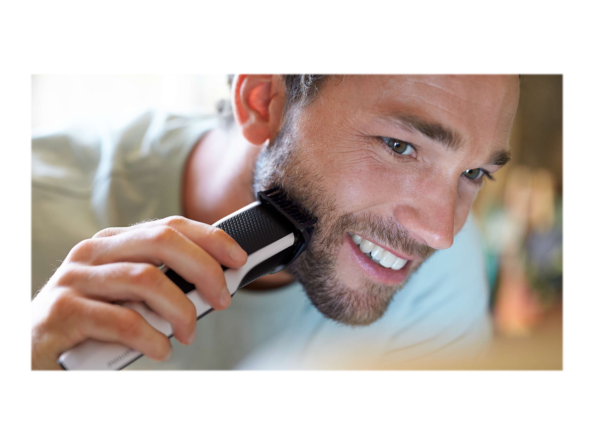 Denne trimmer med det innovative Lift & Trim-system løfter og opfanger mere lavtliggende hår, så du får en effektiv og ensartet trimning. På denne måde får du nemt det udseende med tredagesskægstubbe, kort eller langt skæg, du ønsker.