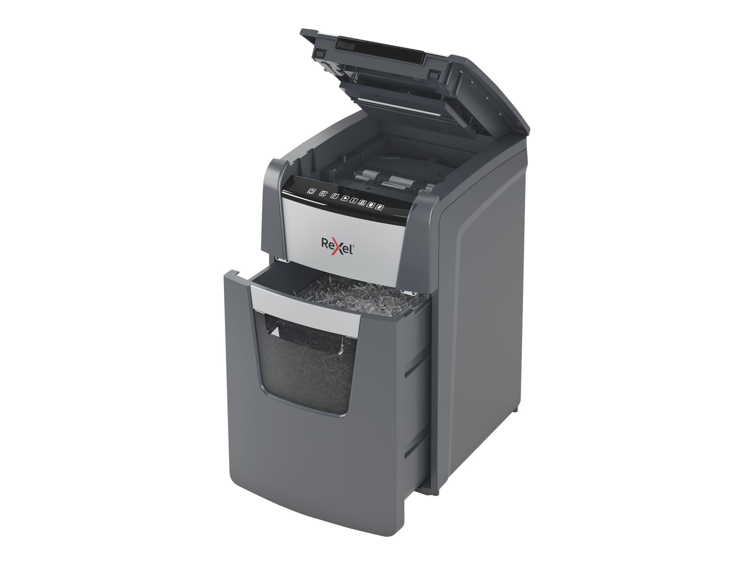 Optimum AutoFeed+ 130M makulator makulerer automatisk op til 130x A4 ark papir (80 g) i en omgang i P-5 (2x15 mm) mikromakuleringsstykker. Denne auto feed maskine er en sofistikeret makulator til kontorbrug med en 44L beholder, der kan trækkes ud ved tømning. Ingen grund til manuelt at indføre papir, eller fjerne hæfteklammer og papirclips først, denne automatiske makulator gør alt det arbejde for dig.