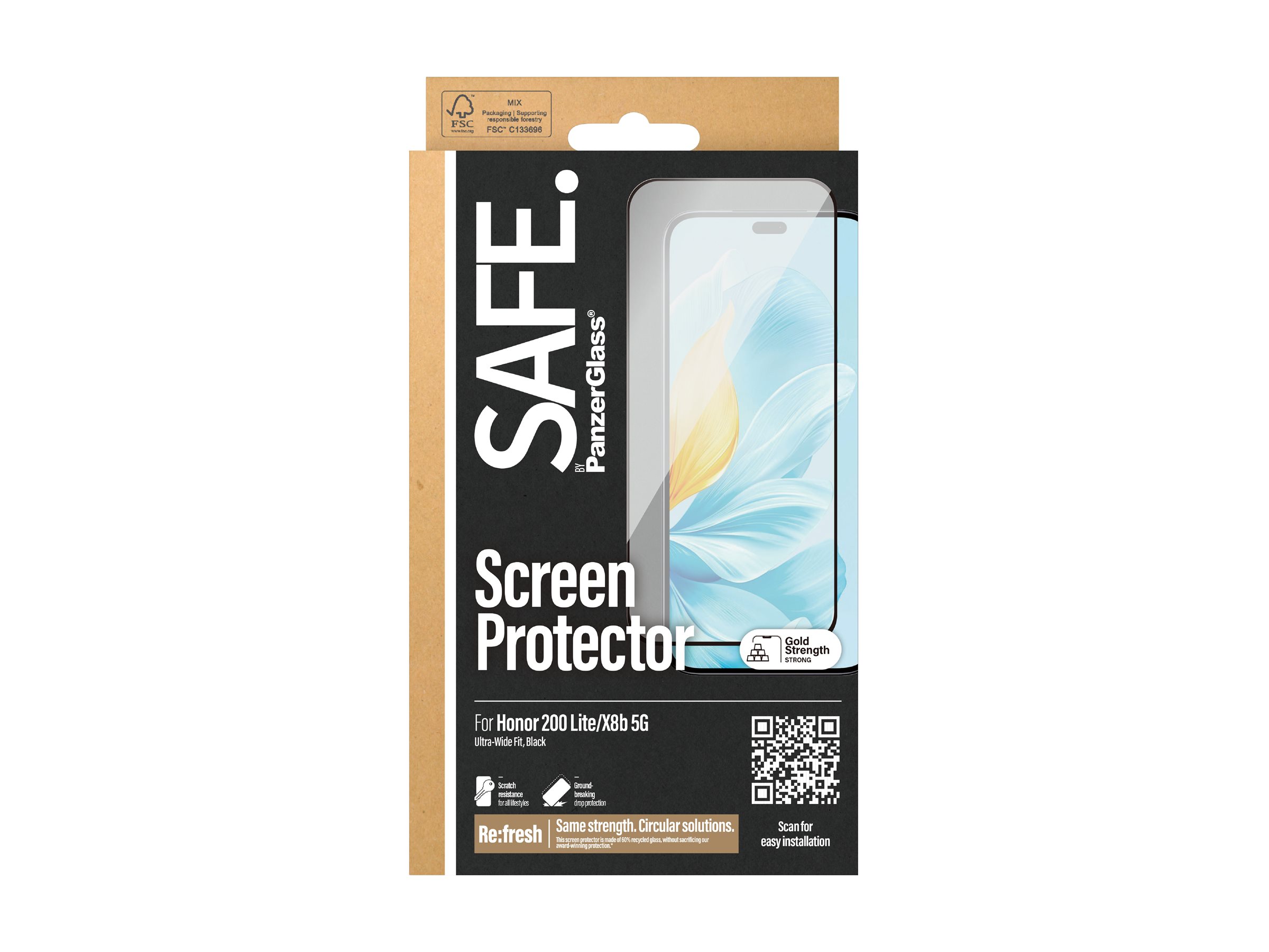 Skærmbeskytteren fra SAFE. by PanzerGlass er for real. Designet til dig, dine venner og din kæreste. Skabt til at modstå scratches og drops, når I slentrer gennem byen og danser hele natten. Og lavet af 60 % genanvendt materiale, så vi sammen kan tage endnu et skridt mod en bedre fremtid. Glasset fungerer som en diskret airbag, der beskytter din skærm, uden at det går ud over telefonens funktionalitet og lækre design. Det har endda en belægning, der reducerer fedtfingre og snavs. Når du vælger SAFE., gør du det ikke kun for din egen skyld, men også for alle dem, der kan få glæde af din telefon efter dig! Ved at passe godt på din elskede mobil kan du nemlig give den et andet, tredje og nogle gange fjerde liv hos en anden, som vil elske den lige så højt som dig. Det er ren telefonkærlighed – og én måde at bidrage til mere bæredygtig fremtid på! En anden er at bruge emballage, der er bedre for miljøet. Derfor leveres dette produkt i en genanvendelig FSC -certificeret æske. SAFE. er noget, man føler sig. Det skal være nemt, ligetil og for alle. Uden lange manualer og langhårede instruktioner. Og får du brug for en ekstra hånd, tjekker du bare trin-for-trin-guiden eller QR-koden til videoen. Og husk: Så snart skærmbeskytteren sidder på din mobil, er det slut med at frygte slo-mo-synet af din skærm, der nosediver mod asfalten. Det kommer muligvis aldrig til at ske, men hvis det gør, vil du fortryde, at du ikke klikkede "Tilføj til kurv". Selv den bedste skærmbeskyttelse er nul værd, hvis den går ud over skærmoplevelsen! I hvert fald hvis du spørger os. Derfor har den her skærmbeskytter størrelsen "Ultra-Wide Fit"! Det betyder, at den beskytter fronten af din telefon, samtidig med at den giver dig en fuldendt skærmoplevelse og efterlader lidt plads langs kanterne til et cover. Vil du være ekstra SAFE., kan du altså nemt kombinere skærmbeskyttelsen med et cover og en kameralinsebeskytter fra SAFE. by PanzerGlass . Keep your phone SAFE.