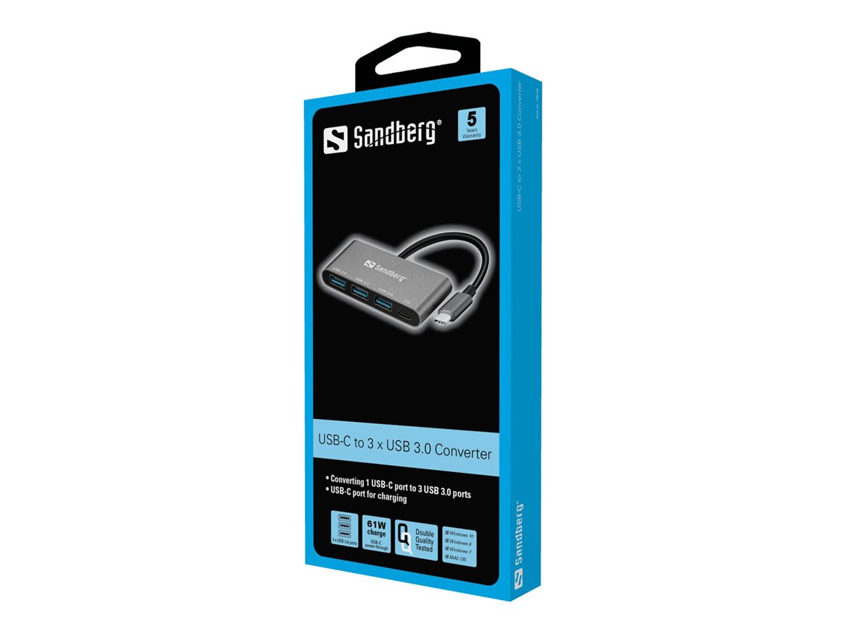 | Produktbeskrivelse | Sandberg USB-C to 3 x USB 3.0 Converter - USB-adapter - USB-C - USB 3.0 x 3 |