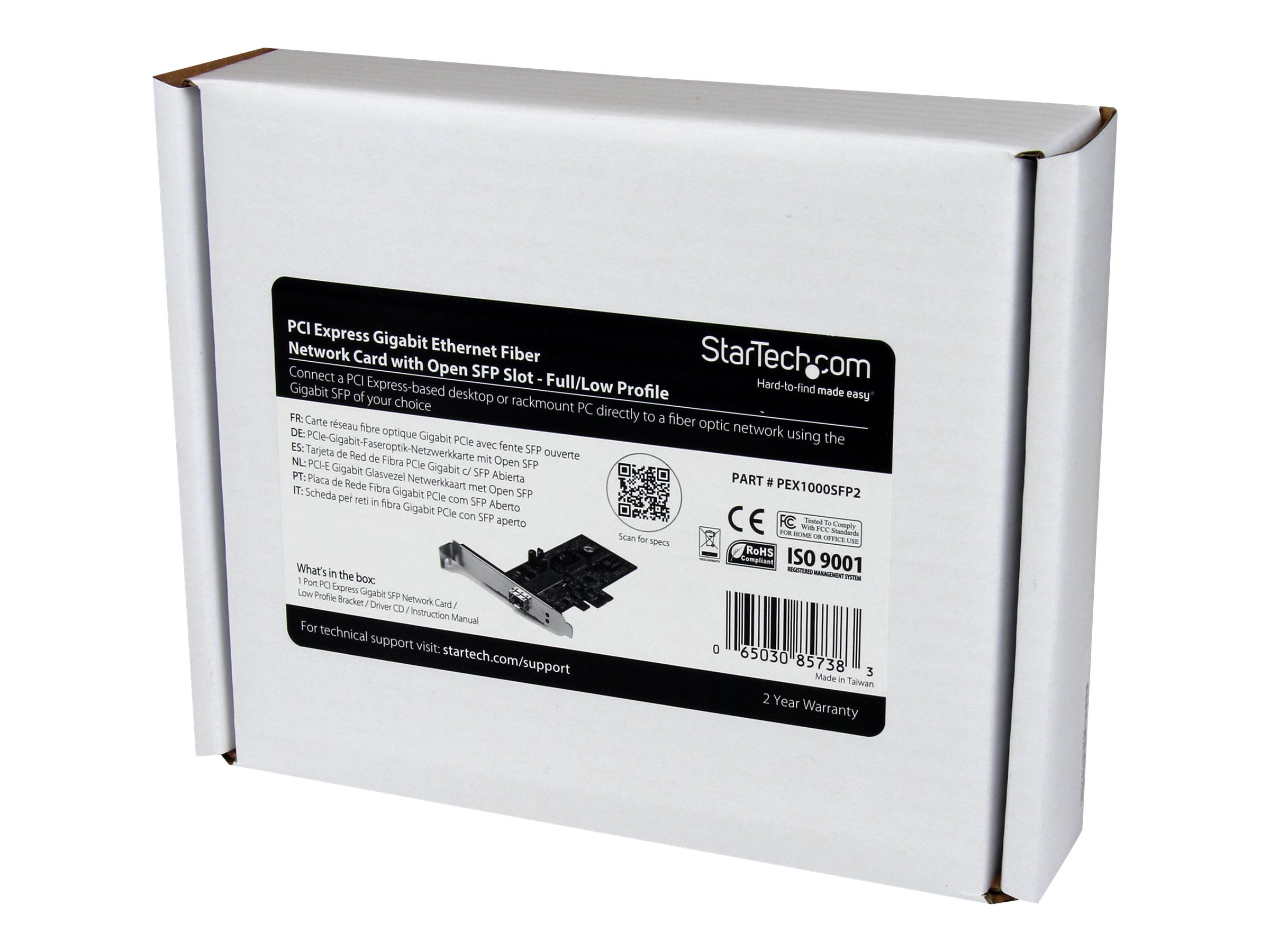 | Produktbeskrivelse | Startech PCI Express Gigabit Ethernet Fiber Network Card w/ Open SFP - PCIe GbE SFP Network Card Adapter NIC - Fiber Optic SFP Adapter (PEX1000SFP2) - netværksadapter - PCI Express x1 |