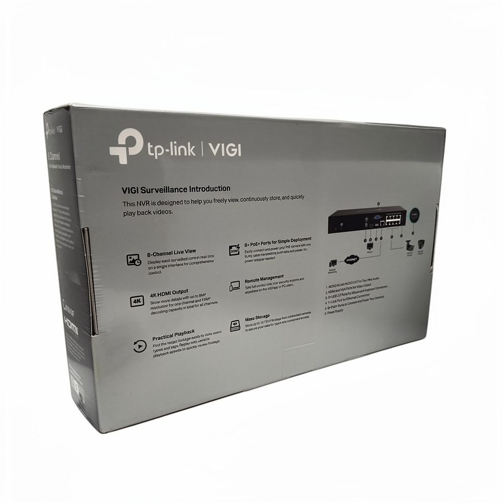 | Produktbeskrivelse | TP-Link VIGI NVR1008H-8P V1 - standalone NVR - 8 kanaler |