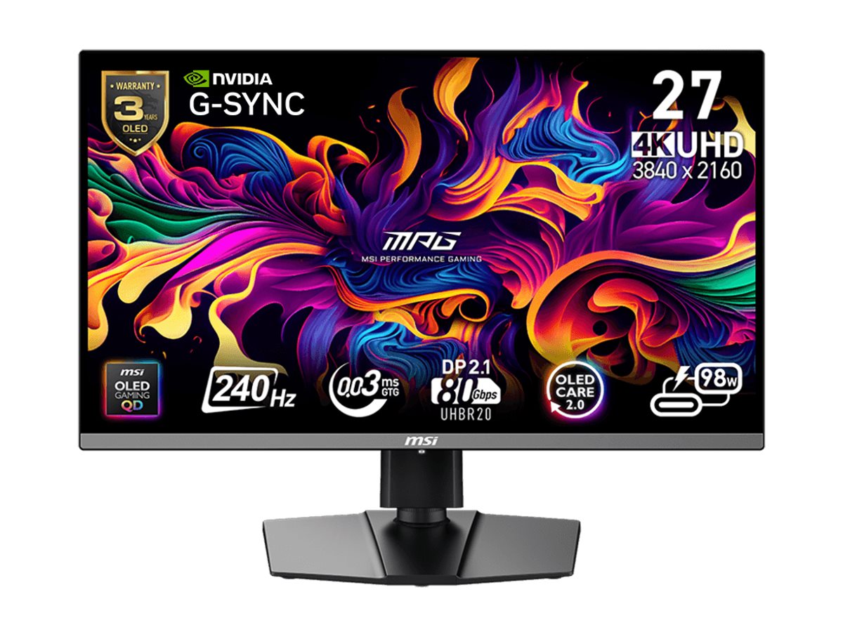 MSI MPG 272URX - OLED-monitor - gaming - 27" (26.5" til at se) - 3840 x 2160 UHD @ 240 Hz - 1000 cd/m² - 1500000:1 - DisplayHDR 400 True Black - 0.03 ms - 2xHDMI, DisplayPort, USB-C