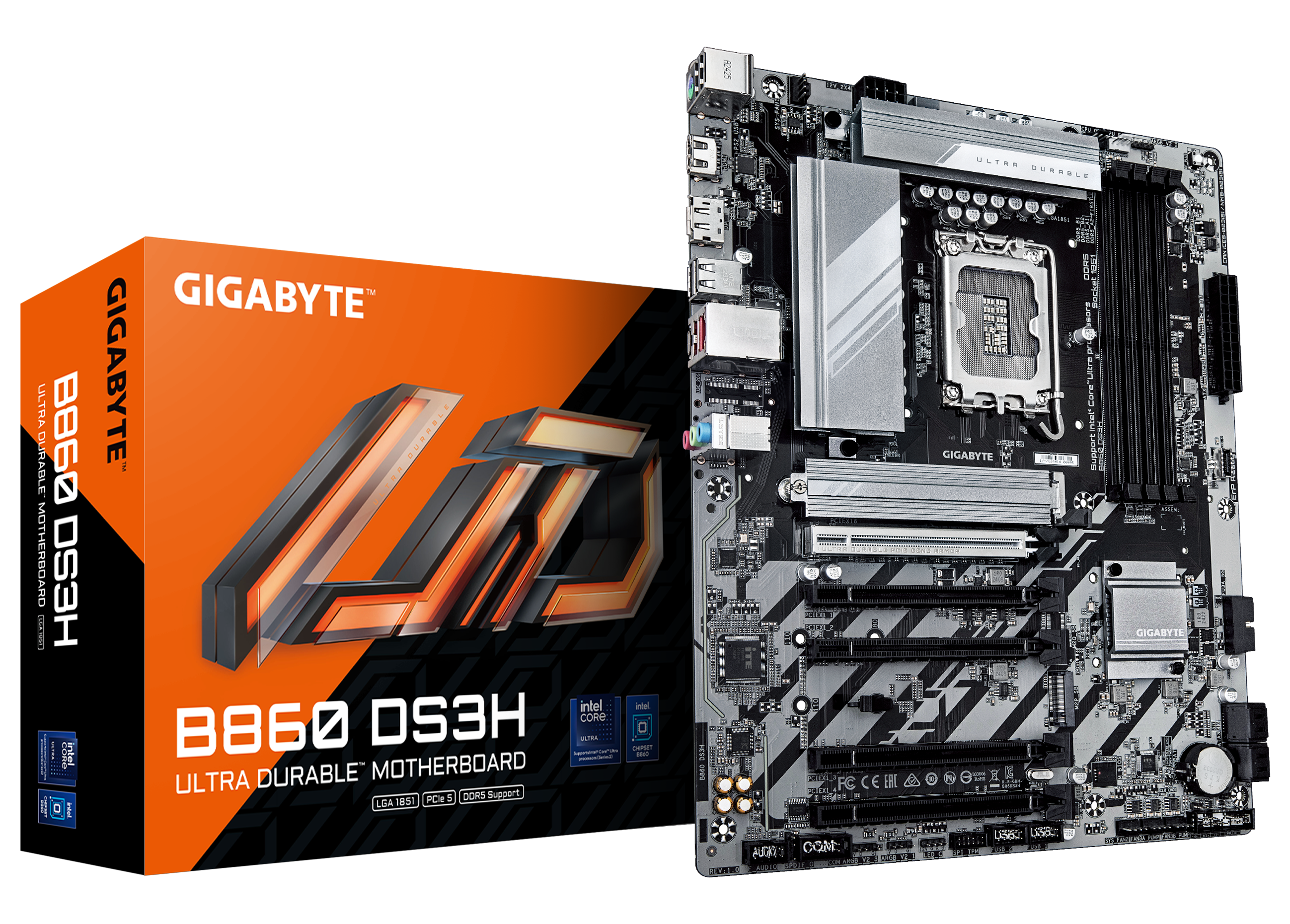 GIGABYTE B860 DS3H er designet med et formonteret I/O-skjold og et gør-det-selv-venligt layout, der gør installationen enklere og mere effektiv og er velegnet til både begyndere og erfarne byggere.
