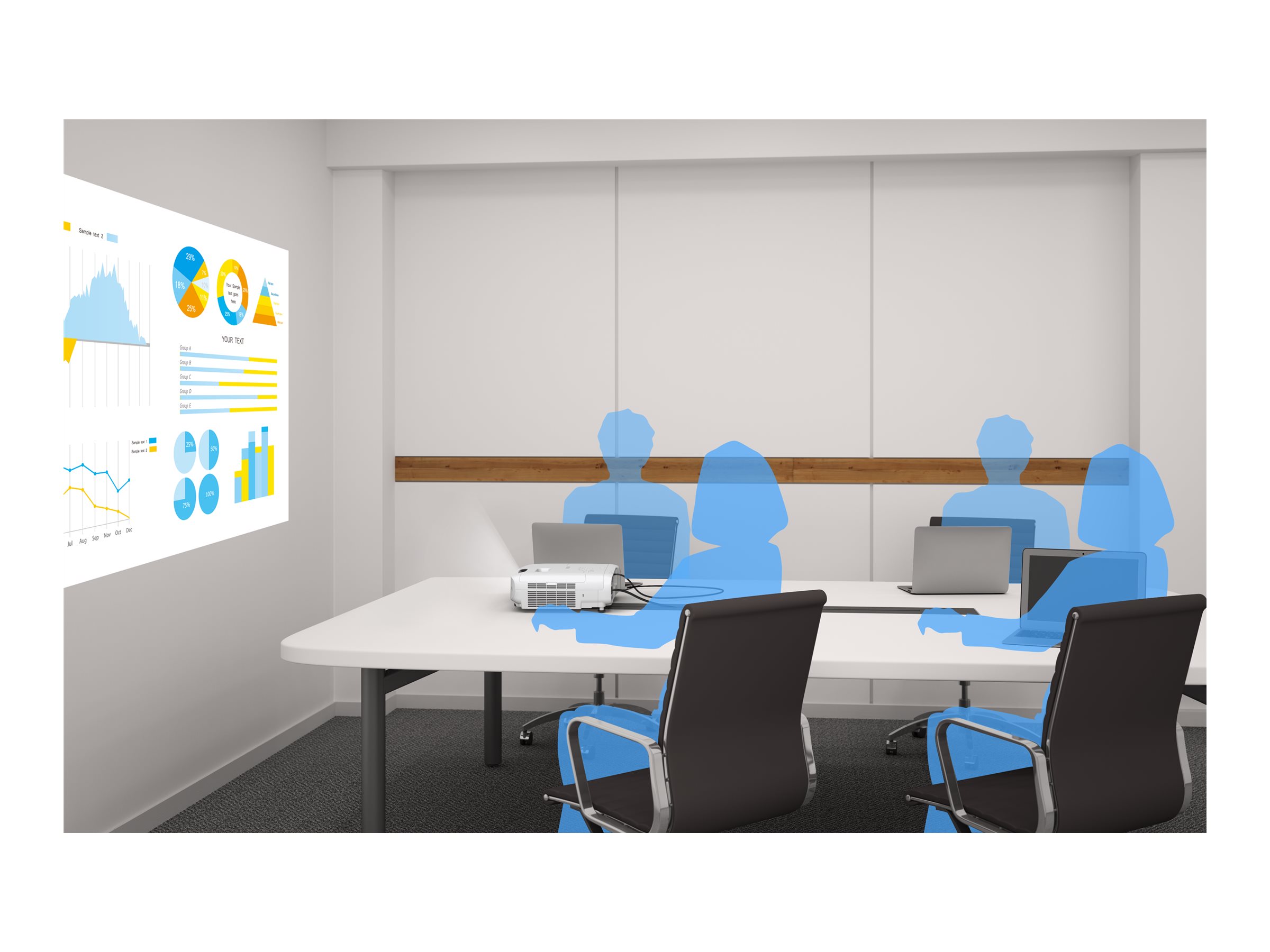 Selv i det mest oplyste klasseværelse eller kontor skaber EB-W56S en engagerende skærm. Dens lysstyrke på 3.700 lumen, HD-forberedte opløsning og skærmstørrelse på op til 300" sikrer, at alle detaljer – uanset om det er billeder, tekst eller video – er tydelige og livagtige.