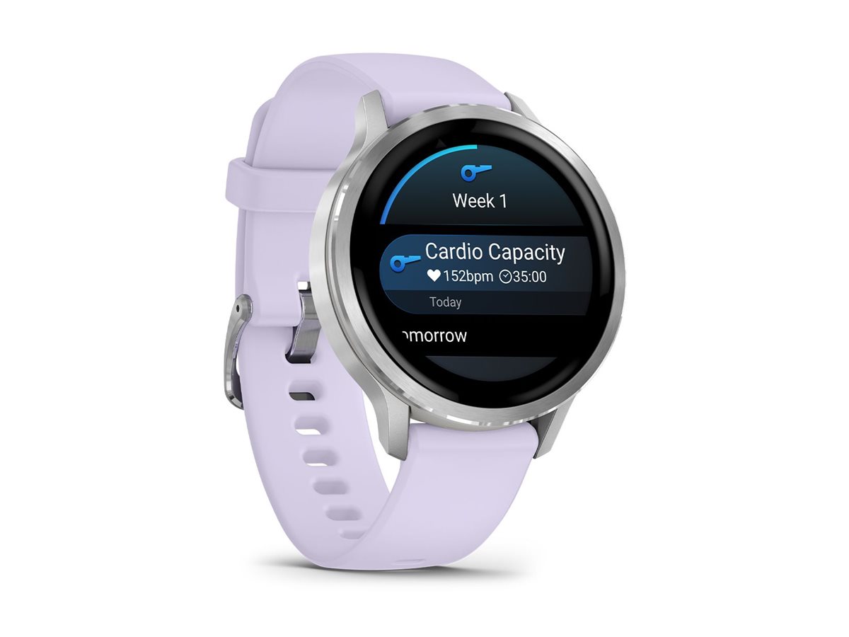 | Produktbeskrivelse | Garmin Venu 4 - sølv - smart ur med bånd - periwinkle - 8 GB |
