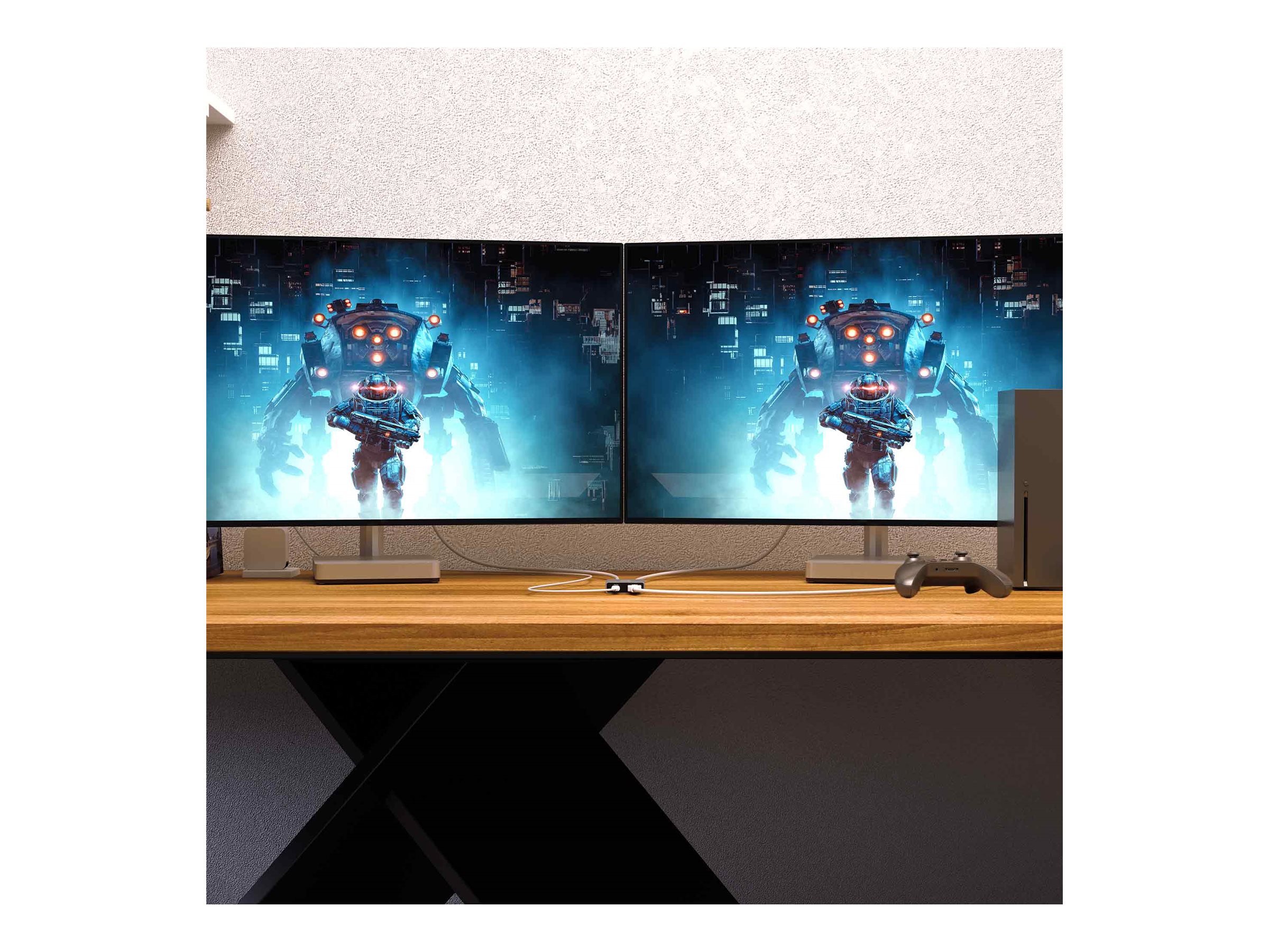Den 8K HDMI 2.1 2-vejs splitter giver dig mulighed for at spejle til op til 2 skærme. HDMI-portene tilbyder alsidige tilslutningsmuligheder for en bred vifte af enheder med HDMI-interfaces. Kompatibel med PS5/PS4, Xbox Series X/Xbox One, desktops, laptops, Blu-ray DVD-afspillere, Chromecast og mere.