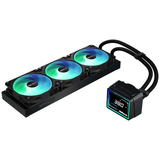 Asrock Challenger 360 Digital ARGB - Processors flydende kølesystem - med LED-display - Radiatorstørrelse: 360 mm - (for: AM4, LGA1700, AM5, Socket, LGA1851) - kobber - 120 mm - sort