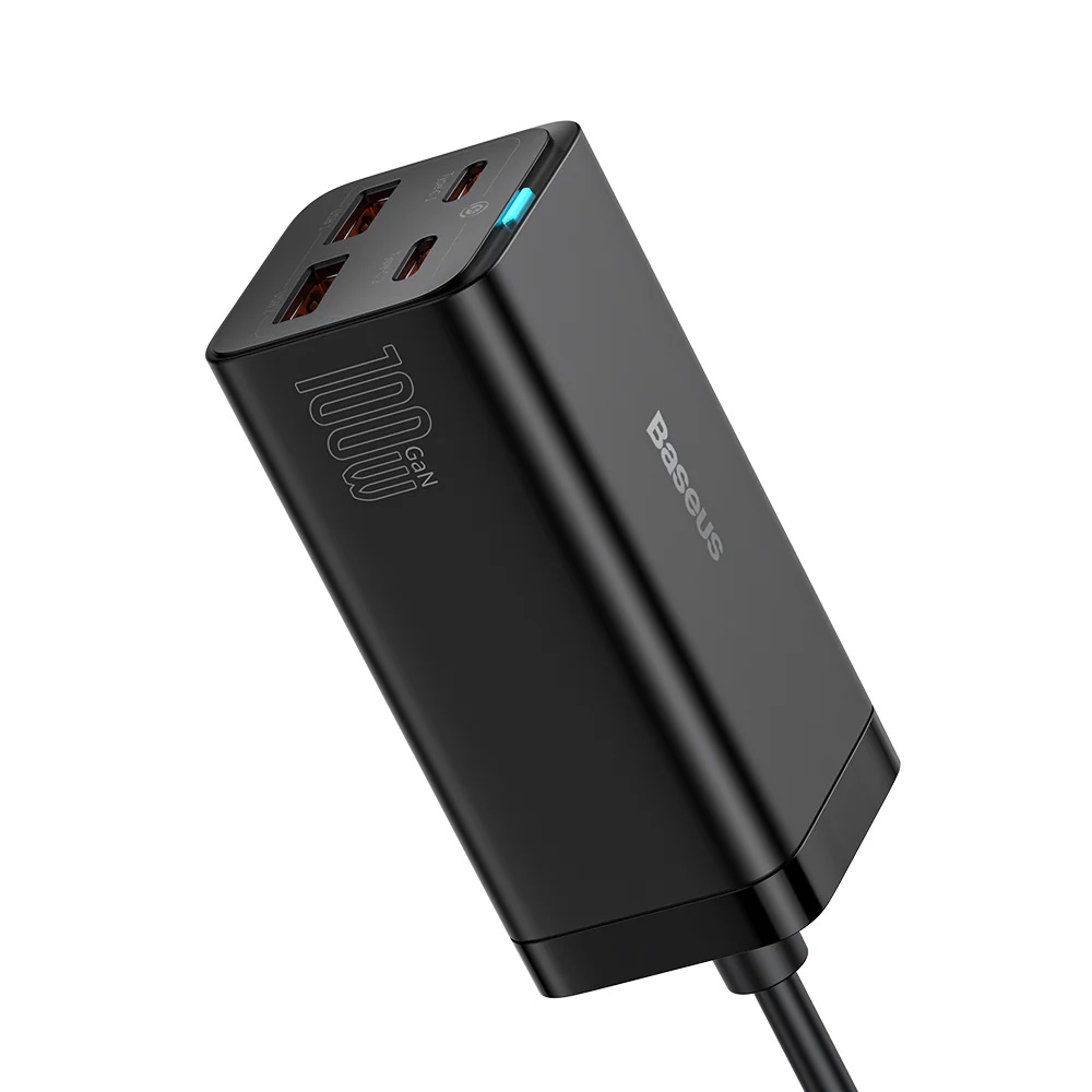 Baseus GaN3 Pro 4 Port - 100Watt - 2xUSB-C + 2xUSB-A - sort