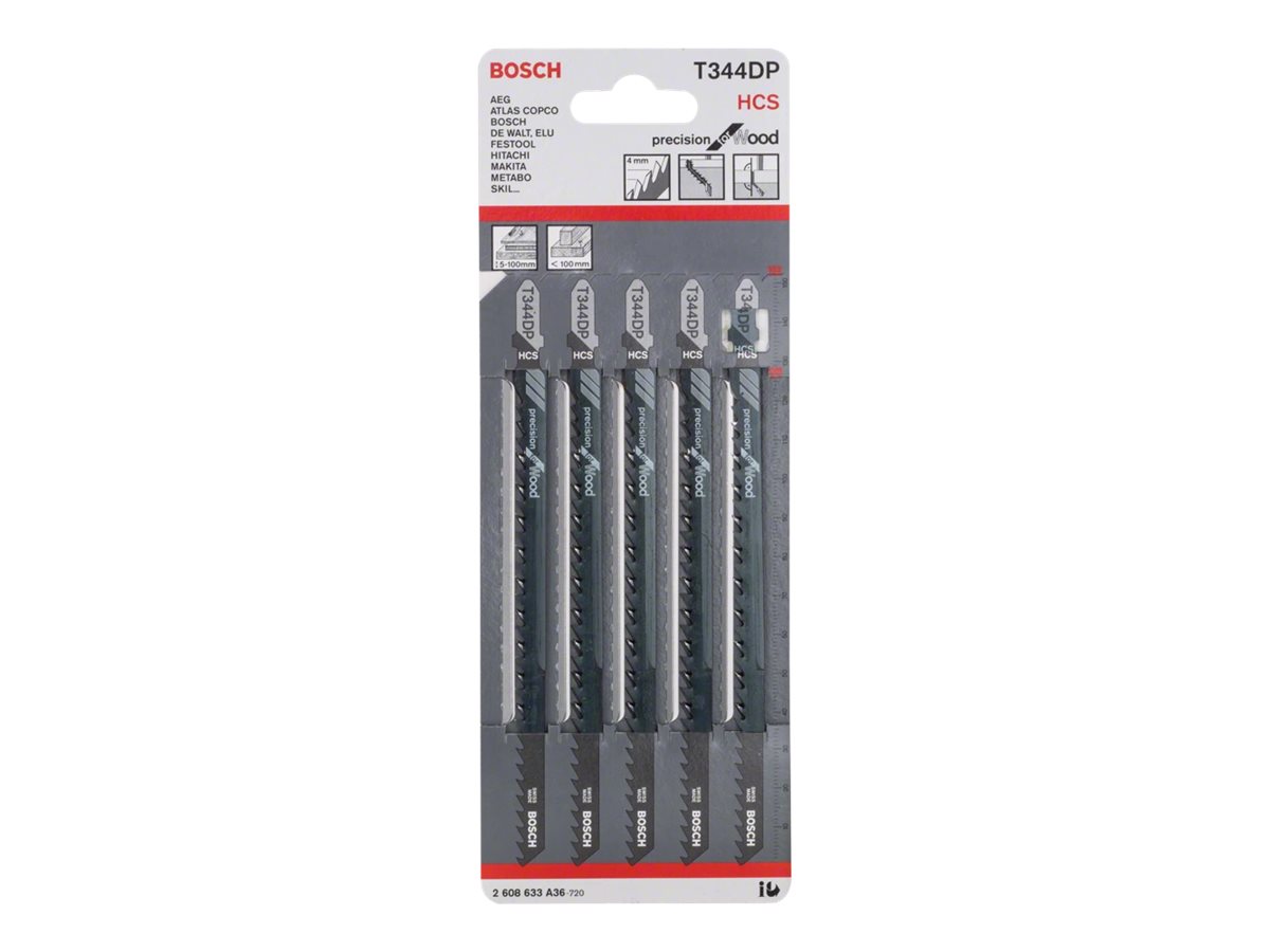 | Produktbeskrivelse | Bosch Precision for Wood T 344 DP - stiksavsklinge - for træ, spånplade, krydsfiner, træfiberplade, blødtræ, tyk konstruktionstømmer - 5 stykker |