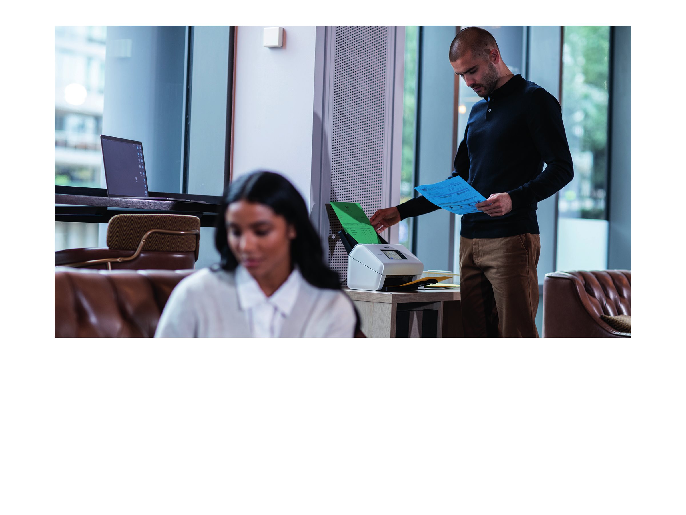 Til scanning af store mængder dokumenter uden afbrydelser. Takket være den enkle one-touch-scanning kan du scanne, sende og modtage forretningsdokumenter sikkert, både hjemme og på kontoret.