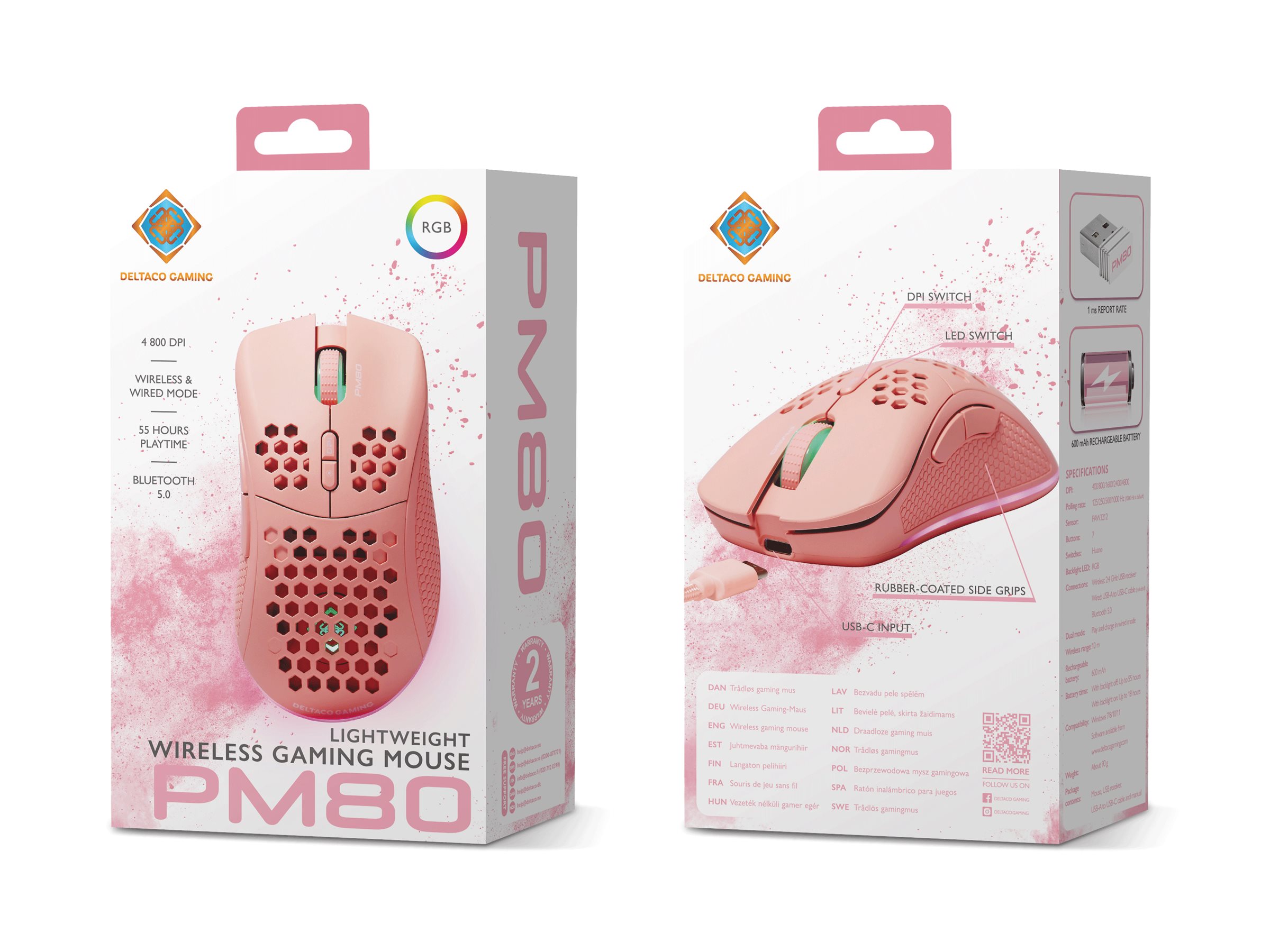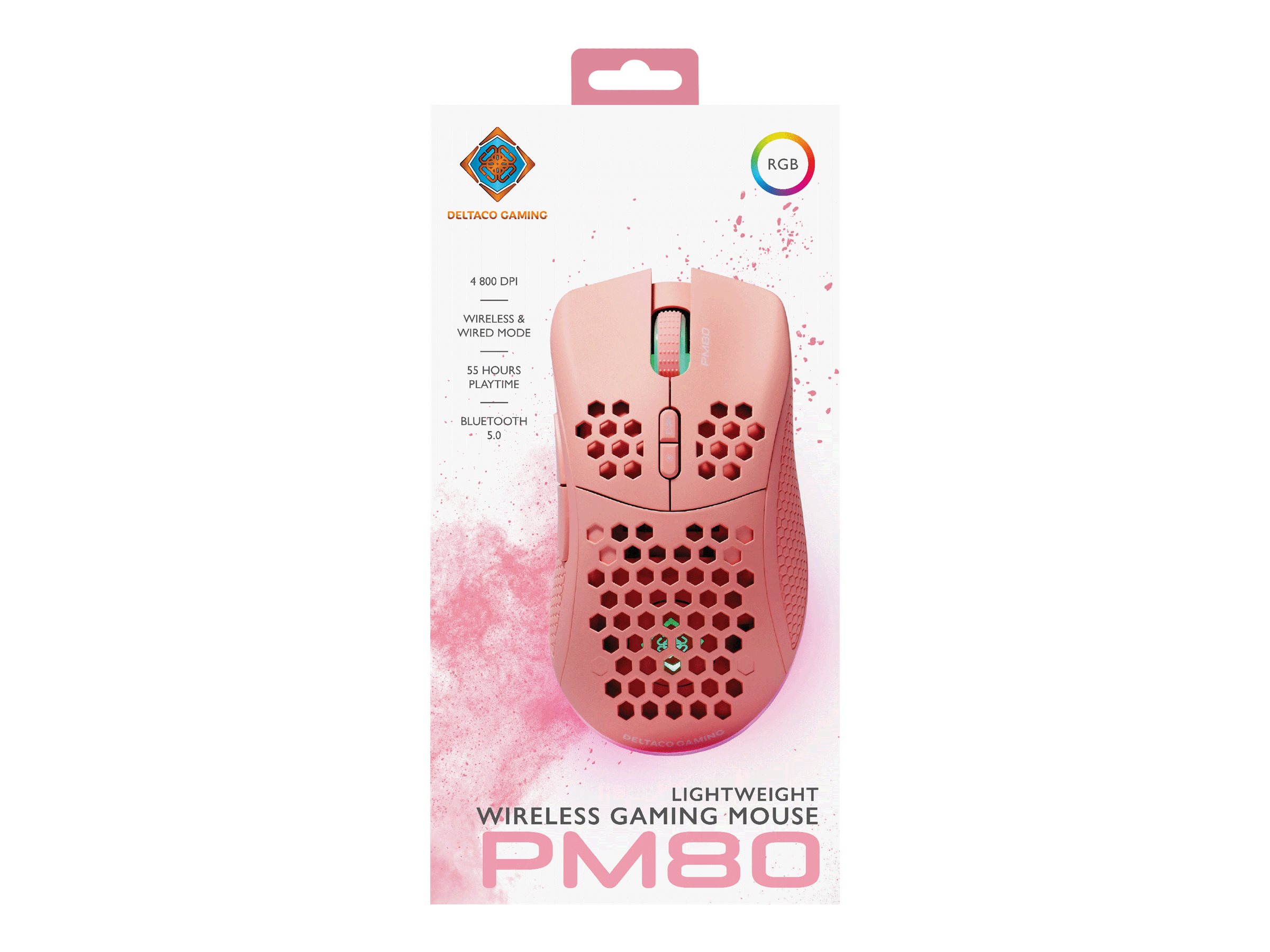 | Produktbeskrivelse | DELTACO GAMING PM80 - mus - USB, 2.4 GHz - pink |