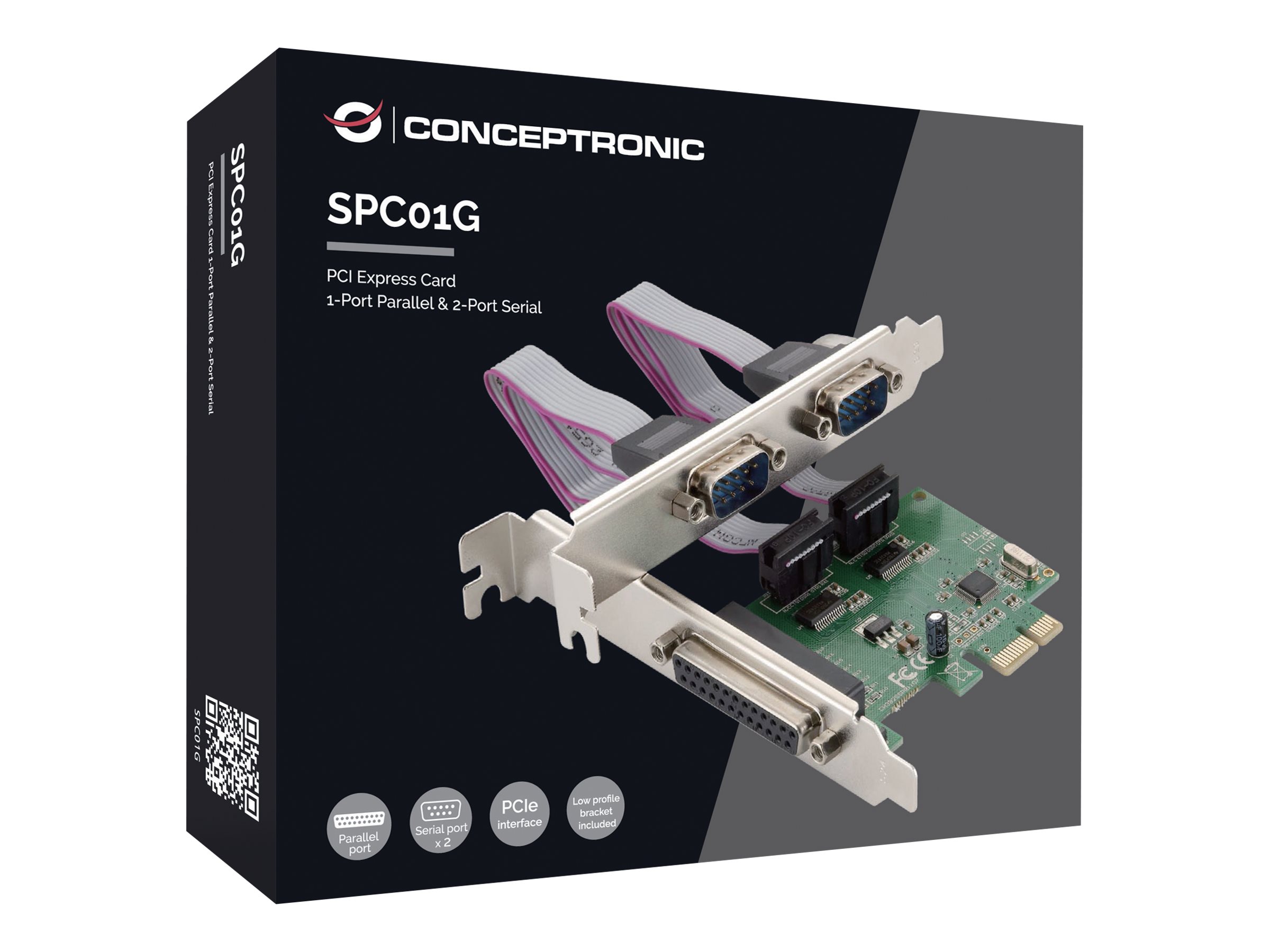 | Produktbeskrivelse | Conceptronic SPC01G - parallel/seriel adapter - PCIe - RS-232 x 2 + parallel x 1 |